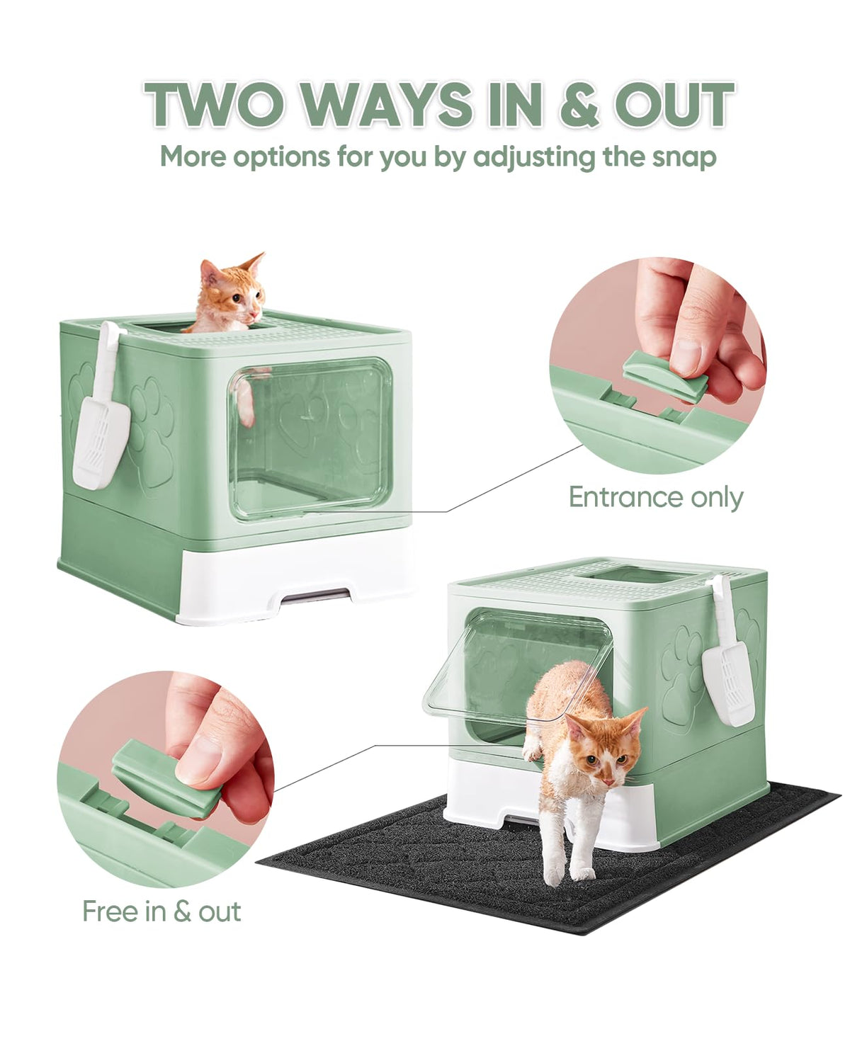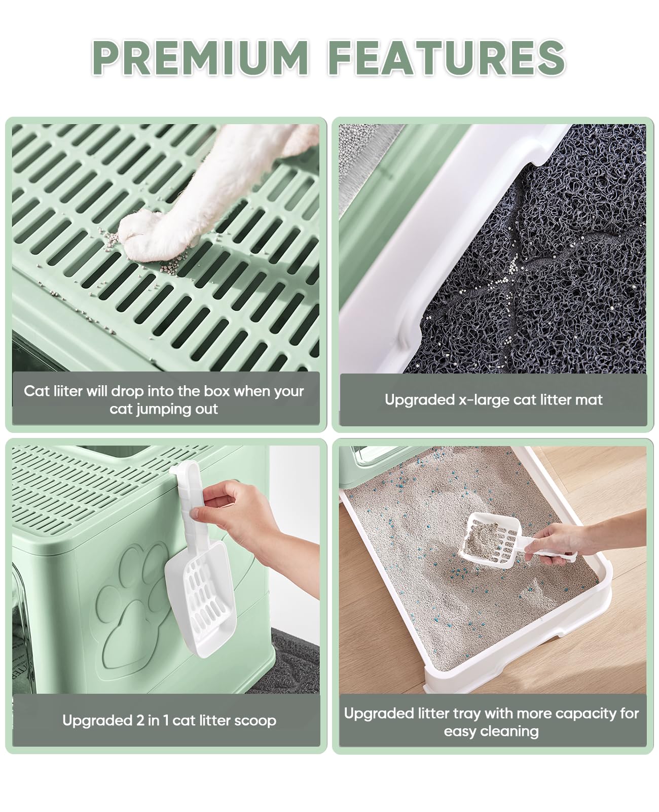 Medario Cat Litter Box With X-Large Litter Mat And Scoop, Large Foldable Litter Box With Lid, Enclosed Kitty Box,Front Top Entry