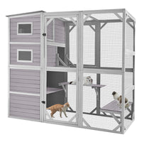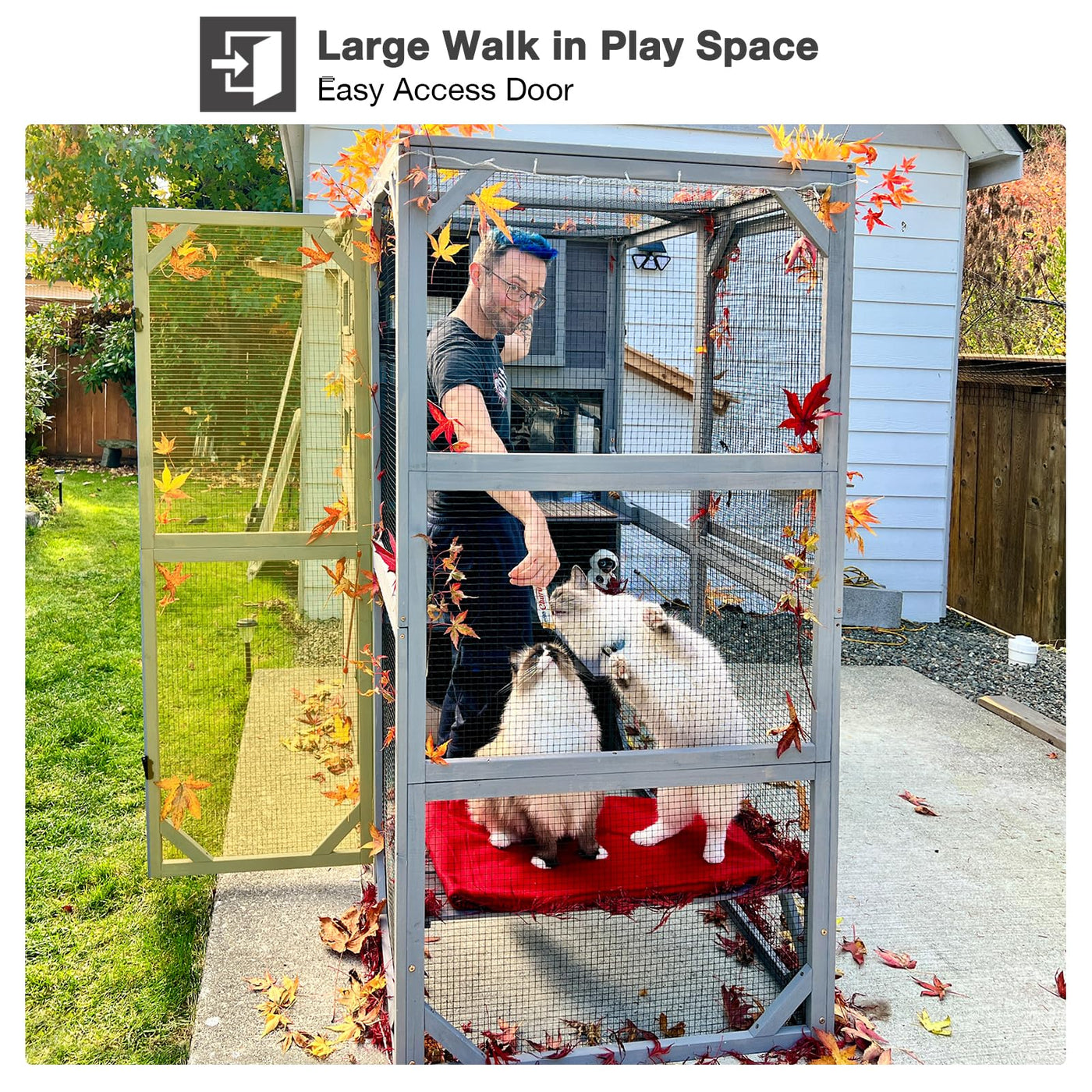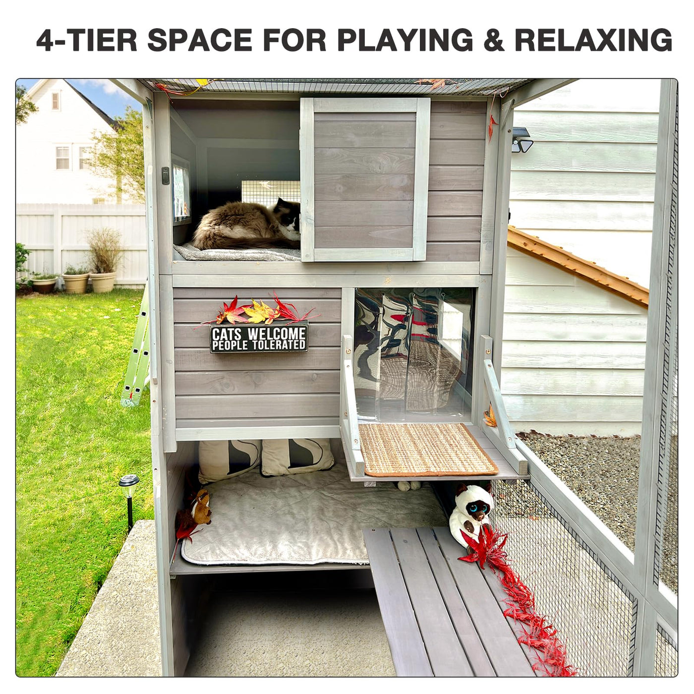 Outdoor Cat House Includes 4 Levels, 3 Resting Rooms, 5 Windows (4 Acrylic Windows, 1 Sliding Window), 3 Platforms. Spacious Living Area Is The Perfect Solution To Keep Your Cats, Raccoons, Squirrels, Lizards, Birds, Pigeons Safe And Enjoy Nature Within A Catio Space.