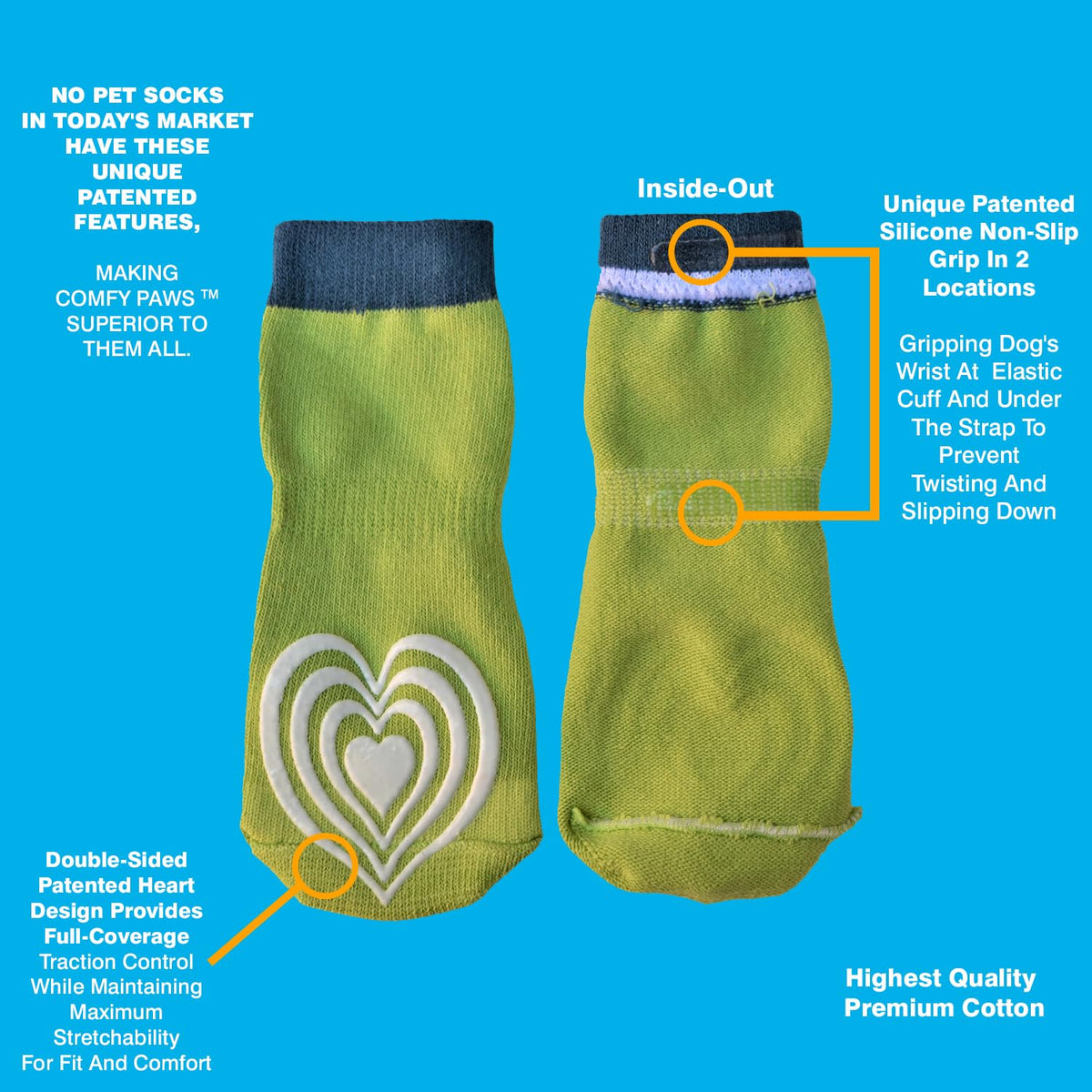 Medical Therapeutic Double Sided Non-Slip Cotton Dog Socks | Pawflex Comfy Pawz Silicone Grip On Inner Cuff No Twisting Or Slidi