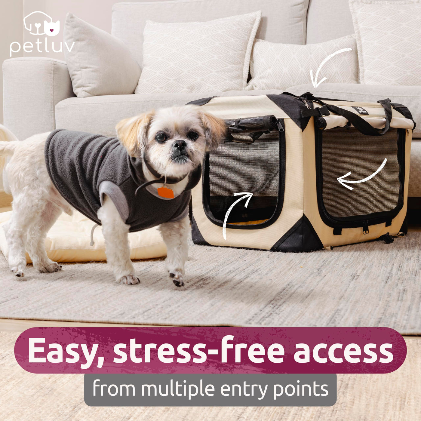 Petluvs Premium Soft-Sided Pet Carriers Are The Treat That Lasts A Lifetime! Say Goodbye To Cramming Your Kitty Into A Cold And Unwelcoming Mailbox-Sized Carrier Or Luring Your Precious Pooch To Yet Another Vet Visit. With Petluv, We Make Pet Travel A Pleasure-For You And Your Pet! Weve Spared No Luxury In Our Soft-Sided Carriers That Have 4X The Space Compared To Traditional Pet Carriers. Our Exclusive Design Features Four Access Panels That Let Your Pet Experience The World Around Them Safely. For Nervous Pets Or Those That Just Need Some Me Time, Solid Privacy Panels Block Out Sights And Distractions So They Can Enjoy Some R&R. A Removable Pillow Is Ultra Plushy And Will Become Your Pets New Favorite Hangout. This Double Sided Pillow Is Durable And Machine Washable (Not Just The Cover) To Make Cleanup A Breeze. We Use A Powerful Combination Of Heavy-Duty Nylon, Canvas, And Mesh Supported By A Lightweight Yet Sturdy Collapsible Metal Frame. The Carrier Folds Flat For Easy Storage And Wipes Clean To Stay Looking And Working Like New. Weve Also Included Reinforced Corners With Double Stitching So Your Carrier Will Last For Your Pets Lifetime. Its The Pet Carrier Your Pets Will Want To Use, One Where You Dont Have To Fight Tooth And Nail (Or Teeth And Claws) To Travel With Your Pet. Make Your Life Easier, No Matter Where You Go, From Vet Visits To Luxury Vacations. Choose From Two Sizes, With Our Large Pet Carrier Holding Up To Two Cats Or One Medium Dog (Max Weight 45 Lbs). Its Great For Cats And Dogs Alike, Made With Comfort And Convenience With Pets And Their Parents In Mind.