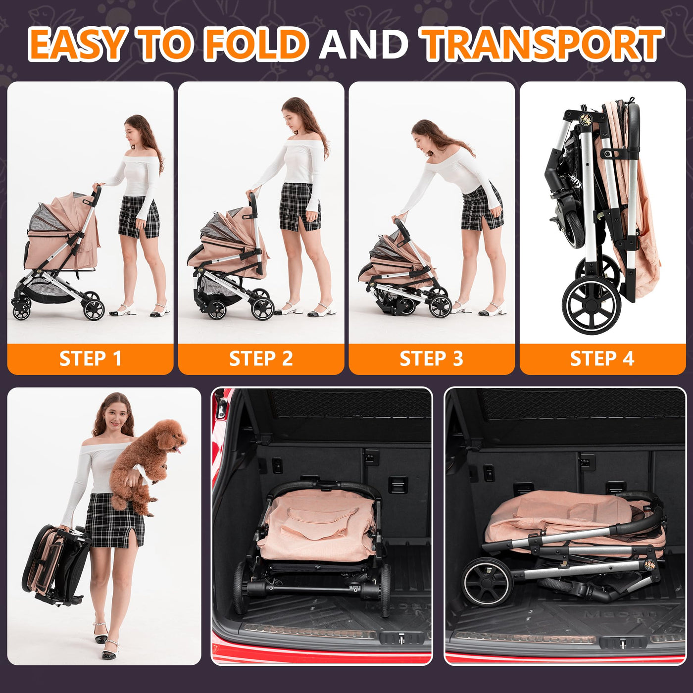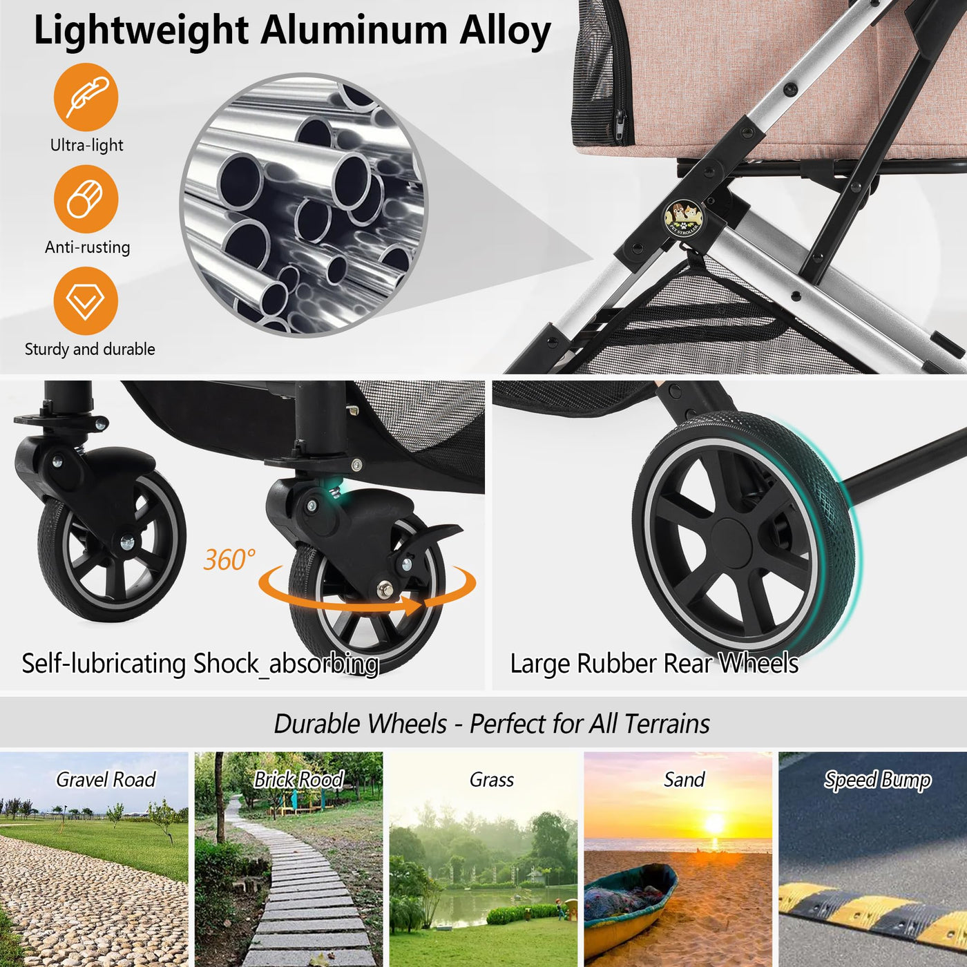 Medium Dog Stroller, Kenyone Pet Stroller For Medium Dogs Up To 55Lbs, Lightweight Aluminum Frame, One Click Folding, Large Cat