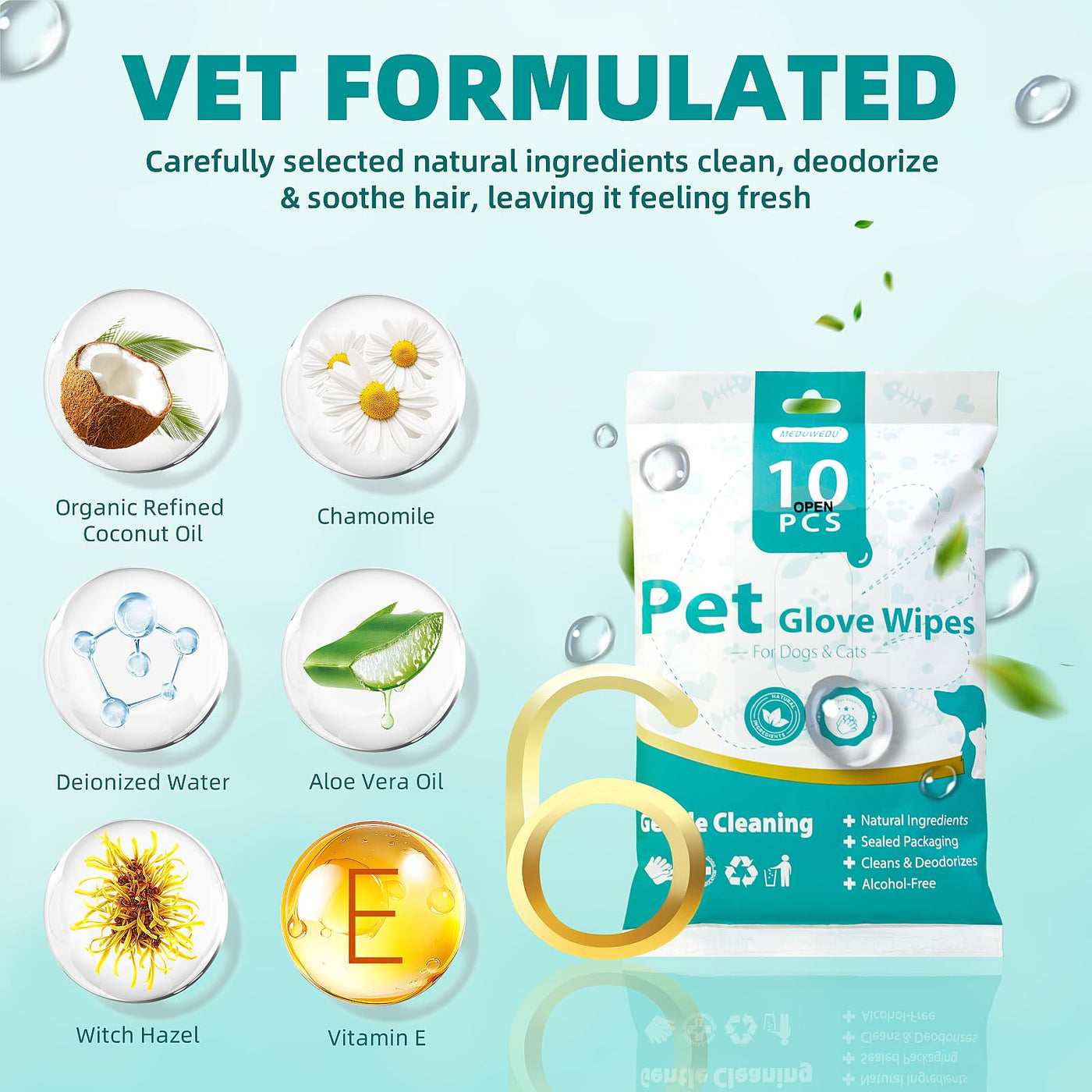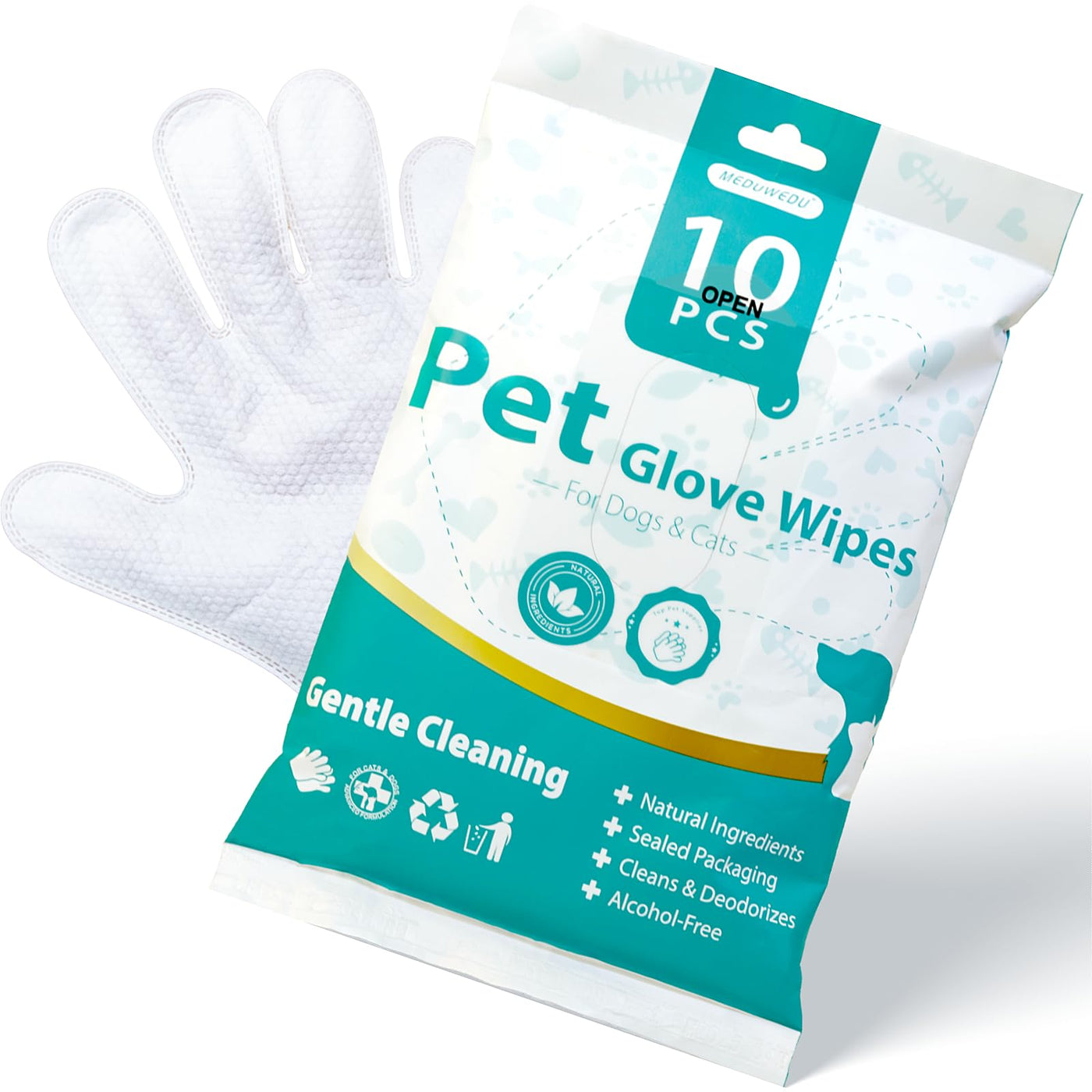 Say goodbye to messy baths and hello to effortless grooming! Our No-Rinse Pet Glove Wipes are designed for pet parents who care about hygiene and convenience. Each glove is pre-moistened with a gentle, hypoallergenic cleansing solution-perfect for dogs and cats of all breeds and sizes. Whether youre wiping dirty paws, deodorizing fur, or cleaning sensitive areas like the face and belly, these disposable glove wipes deliver a quick and refreshing clean without the need for water or rinsing. The textured surface enhances cleaning efficiency, while the thickened non-woven fabric ensures a soft touch that wont irritate your pets skin. Individually packed for travel and hygiene, these wipes are your go-to for everyday grooming, post-walk cleaning, and on-the-go freshness.