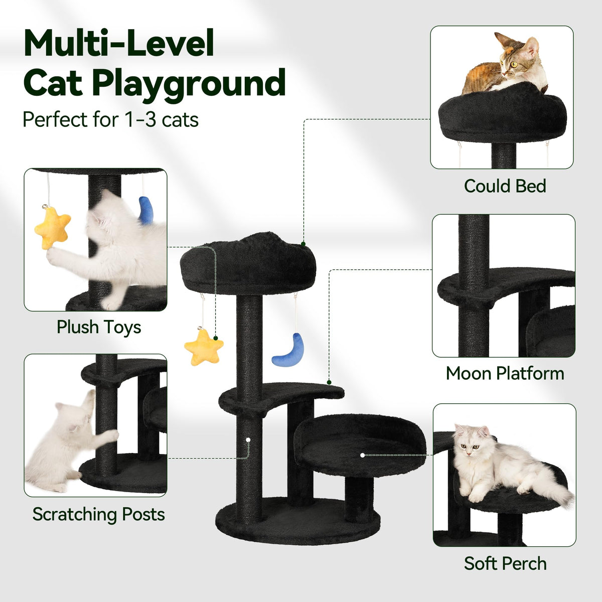 Meecal Kitten Cat Tree For Small Cats Under 6 Months, 24.4In Cloud Cat Scratching Post With Bed & Toys, Max Weight 8Lbs, Compact