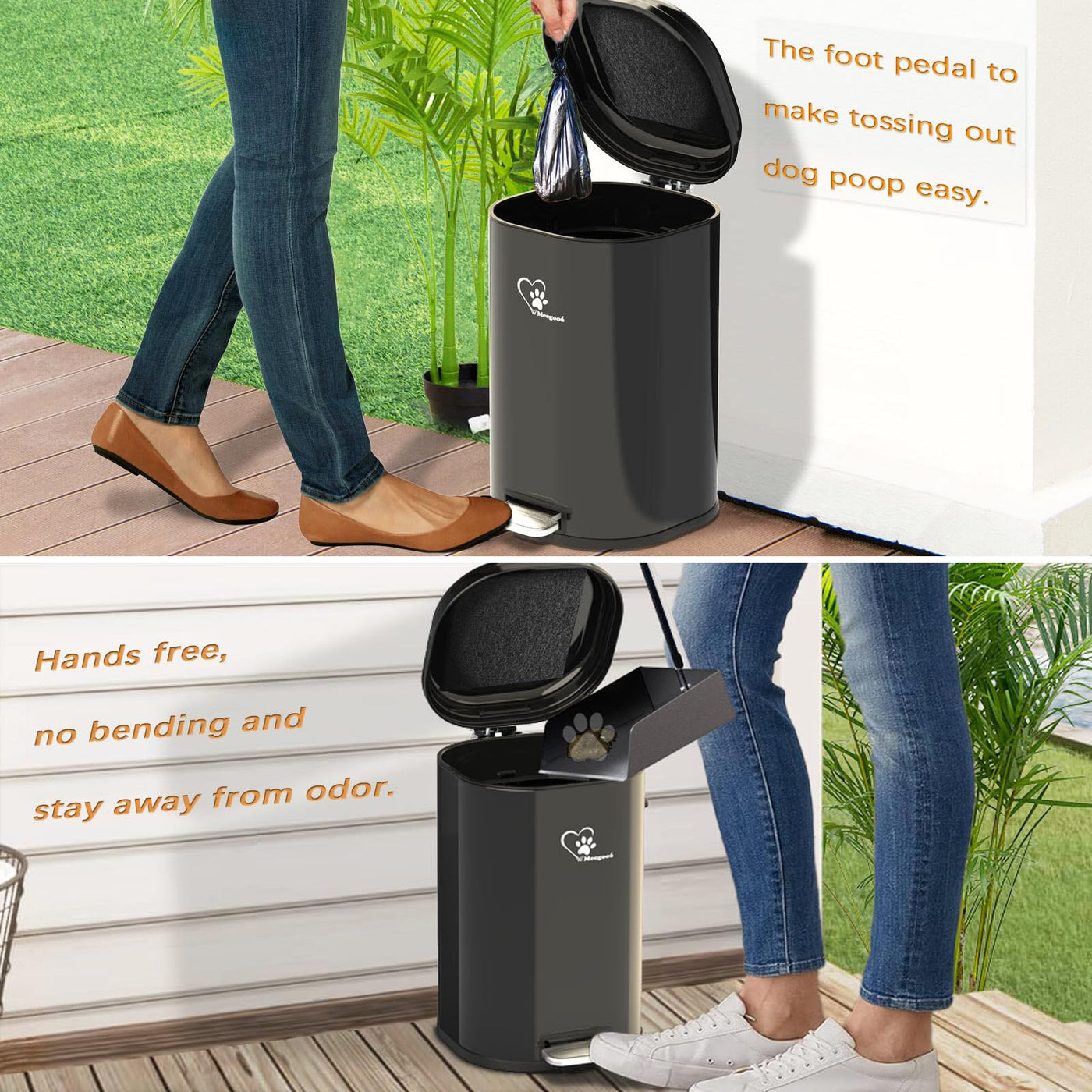 1. Tackle pet waste with ease using our heavy-duty dog poop trash can, featuring a generous 18L capacity, detachable inner bin, and a handy bag retention ring to ensure no spills, perfect for maintaining a clean outdoor dog waste station. 2. Designed for convenience and durability, this dog waste trash can boasts a rust-resistant stainless steel construction with UV protection, complemented by dual handles and a silent soft-close lid, making it an ideal fit for any outdoor setting. 3. Maintain a fresh and odor-free environment with our outdoor dog poop trash can, equipped with an activated carbon filter to lock in odors, and a stainless steel foot pedal for hands-free disposal, ensuring a hygienic solution for dog owners. 4. The included poop scooper for dogs with an extended handle and rake accessory ensures effortless cleanup while protecting your back, seamlessly integrating with our dog proof trash can to provide a complete waste management system. 5. Our metal trash can with lid outdoor is not just robust but also smartly designed with a noise-free closing mechanism and weatherproof features, making it an essential pooper scooper heavy duty companion for any dog-friendly area. 6.Other:dog proof trash can,pet trash can,pet waste trash can,poop trash can,poop trash can,airtight trash can for dog poop,cat poop trash can,dog proof bathroom trash can,bathroom garbage can with lid,litter trash can,locking trash can,office trash can with lid,dog waste station