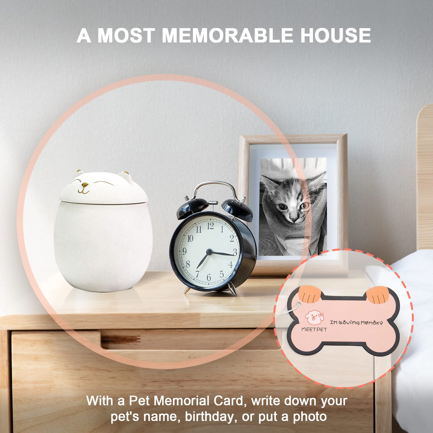 Q: Can I personalize the urn with my pet's information?A: Yes, the MEETPET Cat Urn includes a memorial plate where you can write your pet's name, birthday, and any special messages, allowing for a personal touch.