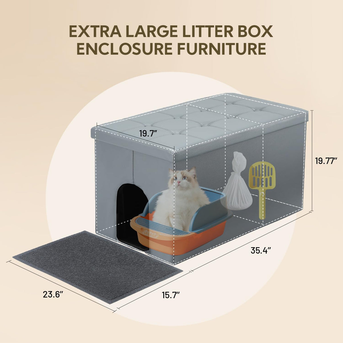 Meexpaws Cat Litter Box Enclosure Furniture Hidden, Cat Washroom Bench Storage Cabinet | Extra Large 36'' X 20'' X 20''| Dog Proof | Waterproof Inside/Easy Clean | Easy Assembly | Odor Control(Grey)