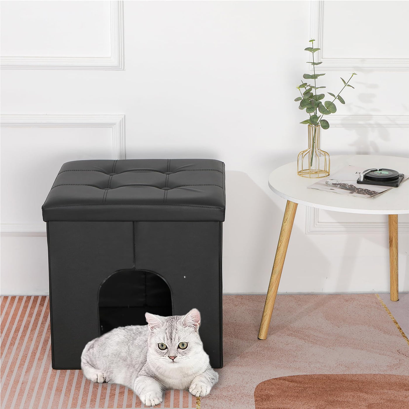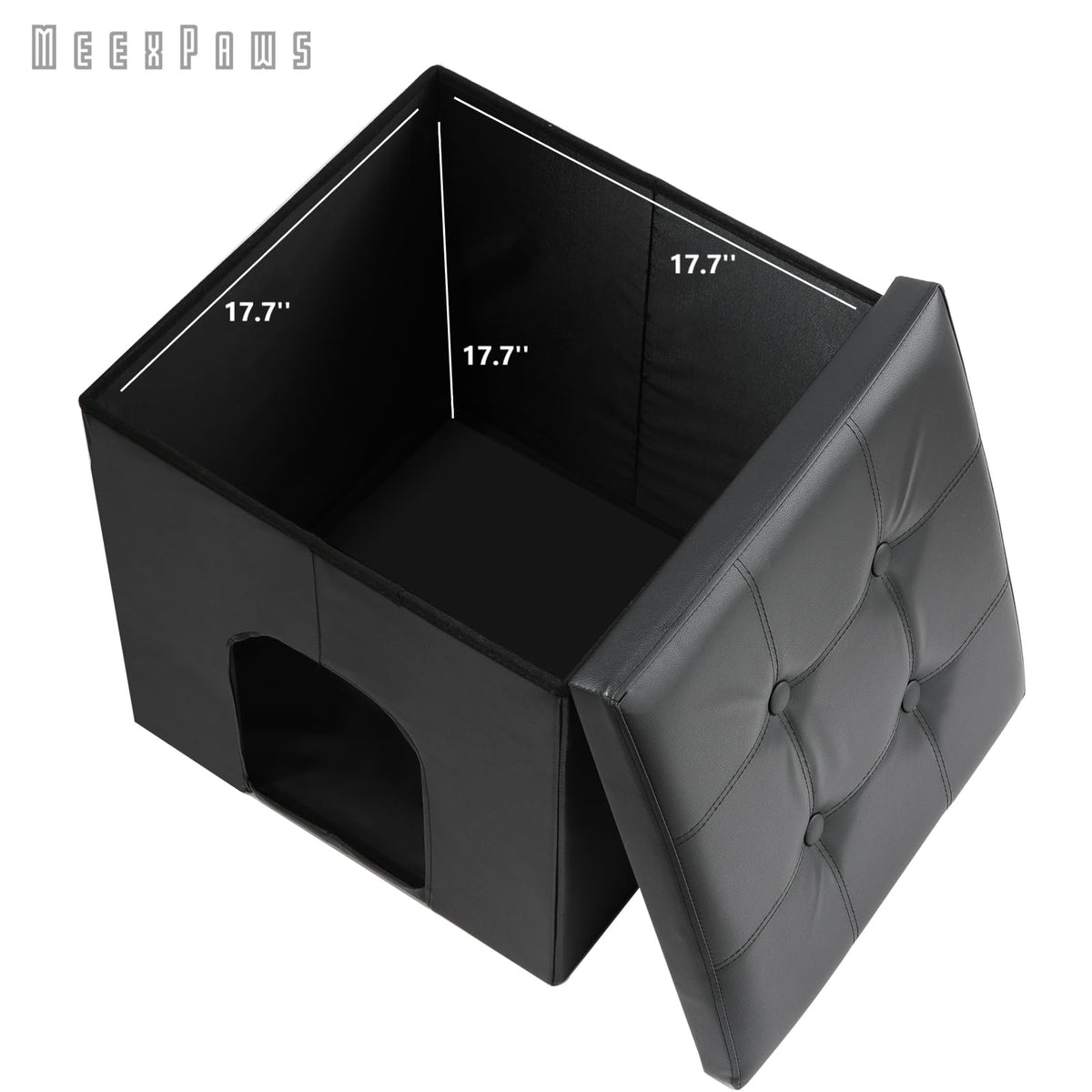 Q: How easy is it to assemble the litter box enclosure?A: The MEEXPAWS Cat Litter Box Enclosure is designed for easy assembly. It features a foldable ottoman structure that can be set up in just a few minutes.