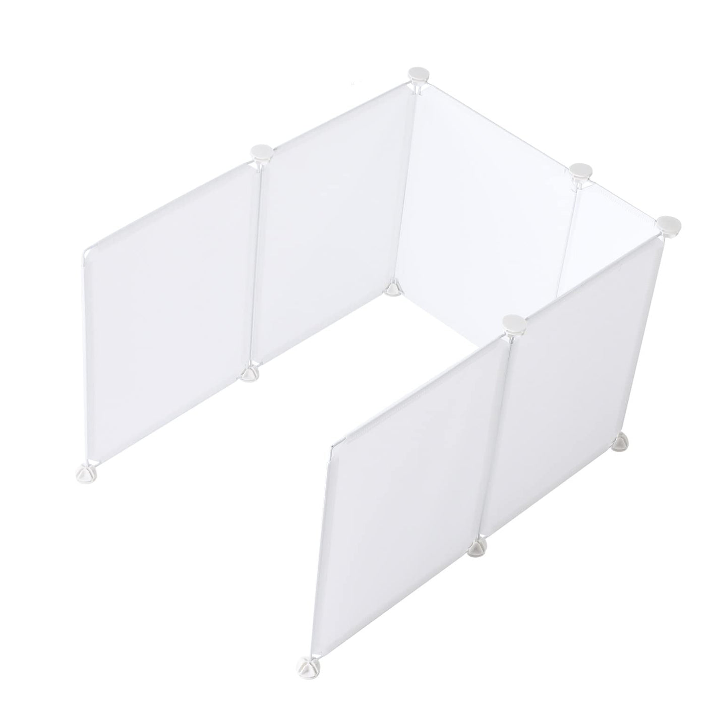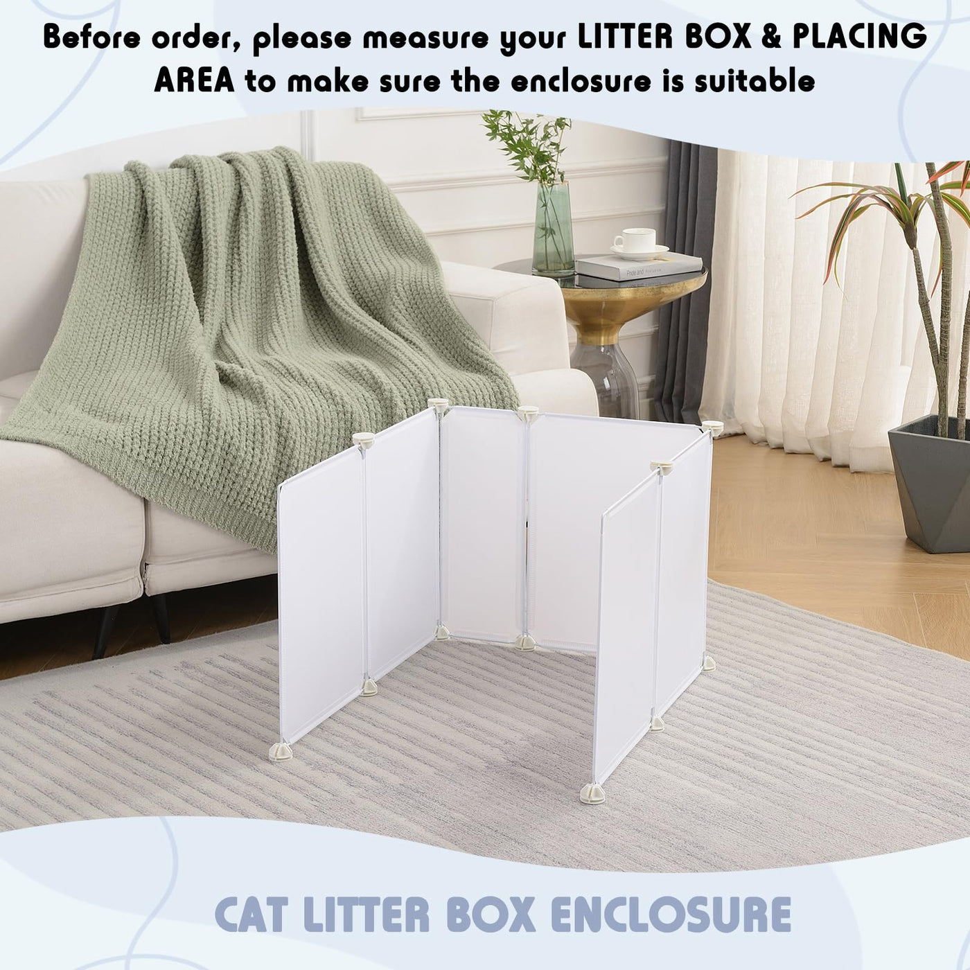 EXTRA LARgE DIY ENcLOSURE Overall L279AAW215AAH176 (HandAmeasurementAwillAhaveAdiscrepancyAofAabout 12 ) splash guard for all kinds of cat litter box Before order please measure your LITTER BOX & PLAcINg AREA to make sure the size of enclosure is suitable If cat likes scattering litter out of box please choose the higher size of A High Side - L19AW19AAH20 or purchase another set of screen ( 2 sets can be assembled with double height) SPLASH gUARD The splash guard is composed of several plastic sheets and connectors You could DIY the splash guard according to your requirements EASY cLEAN The plastic sheets are waterproof very easy to clean EASY ASSEMBLY During assembly Please check and make sure that all the wires of sheets are inserted into connectors totally Otherwise the sheets will fall apart easily ATTENTION : Before order please measure your LITTER BOX & PLAcINg AREA to make sure the size of enclosure is suitable