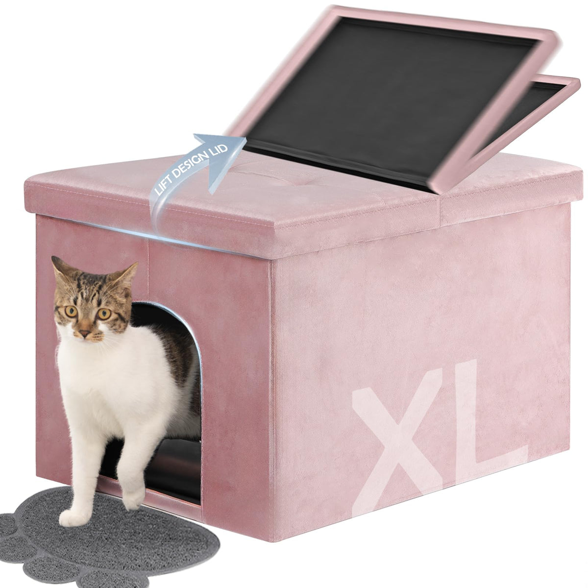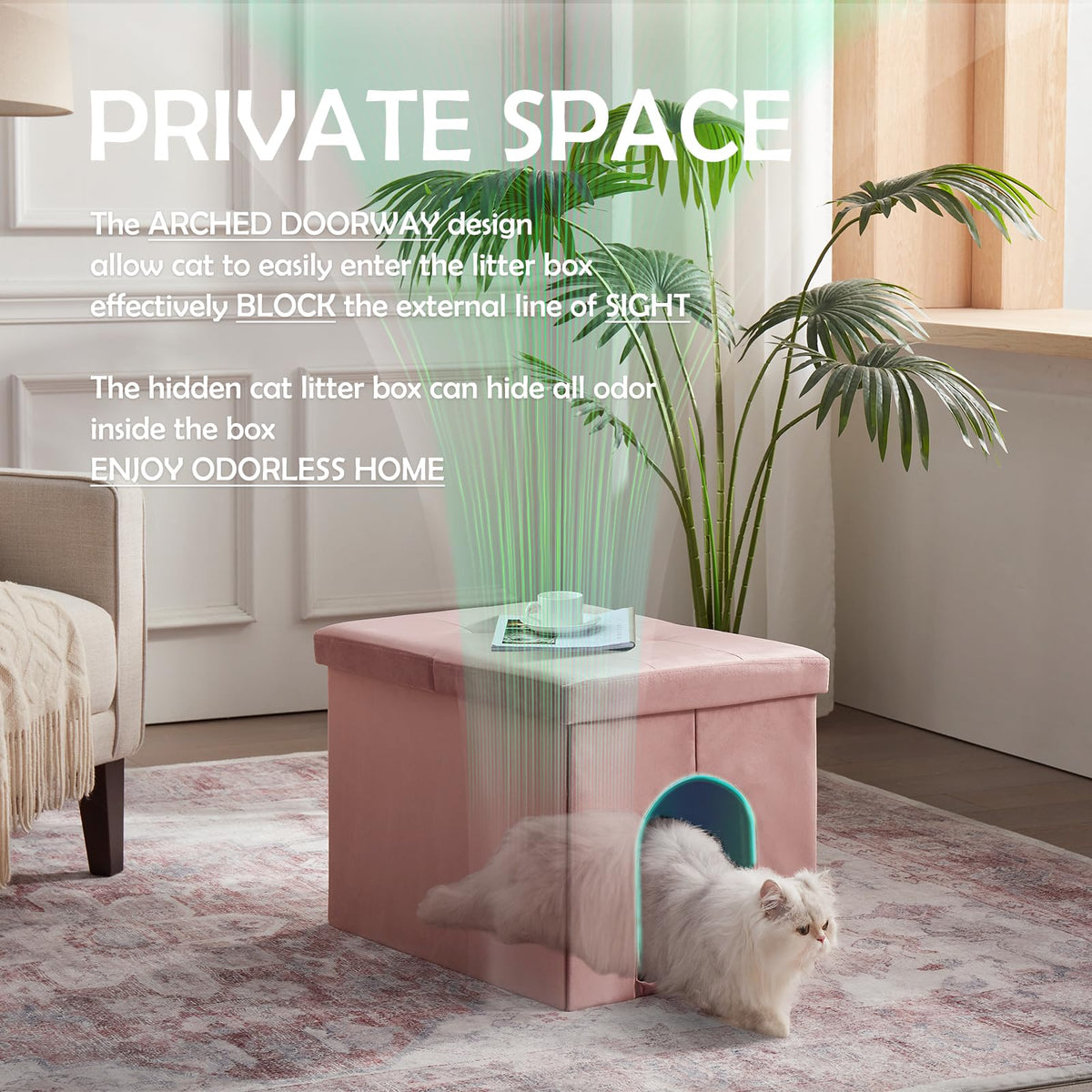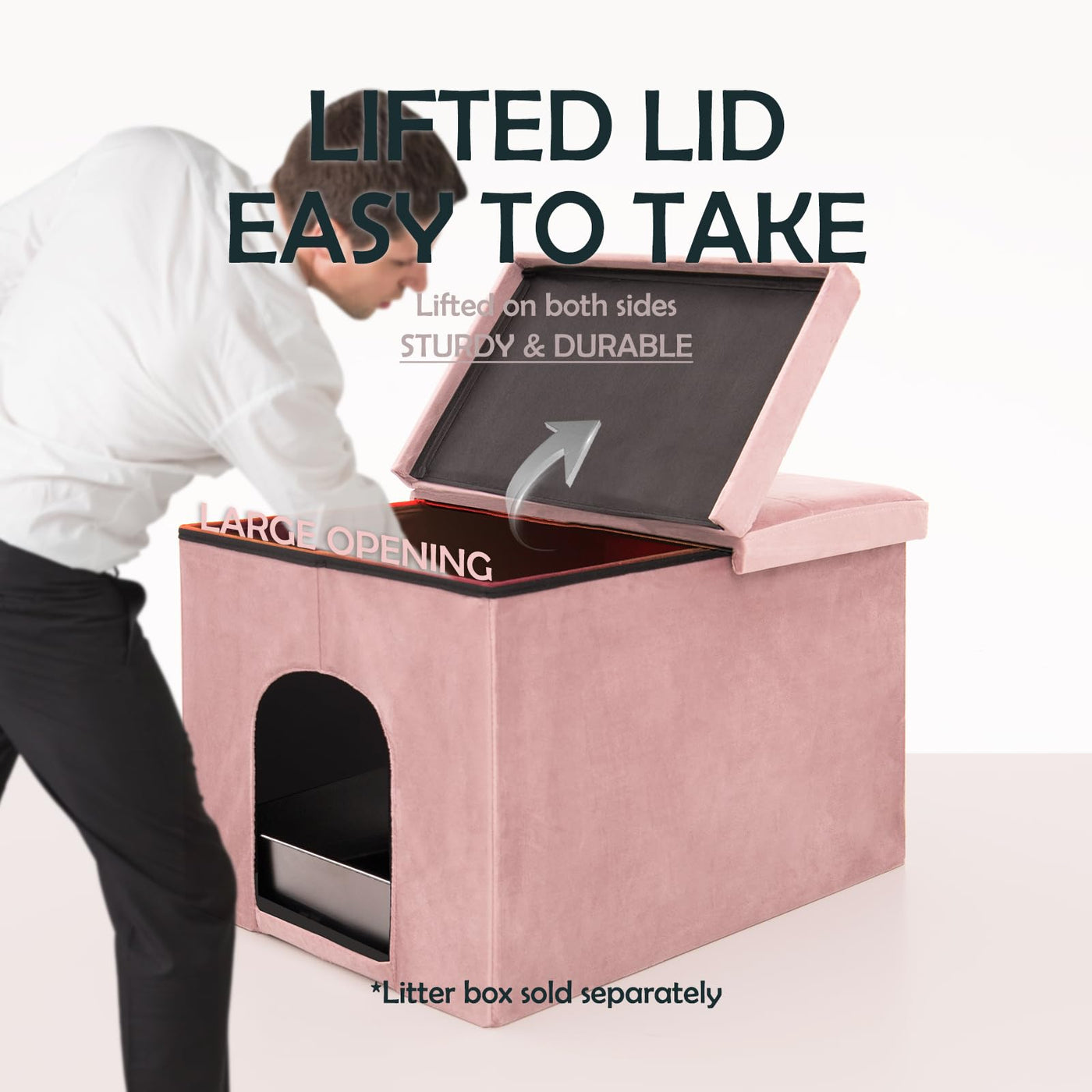 MEEXPAWS Velvet Cat Litter Box Enclosure Furniture Hidden With Lift Design Lid Features : It hides the litter boxEasy access for cleaningSturdy enough to set things on top of itIts elegant on the outside and quite spacious inside