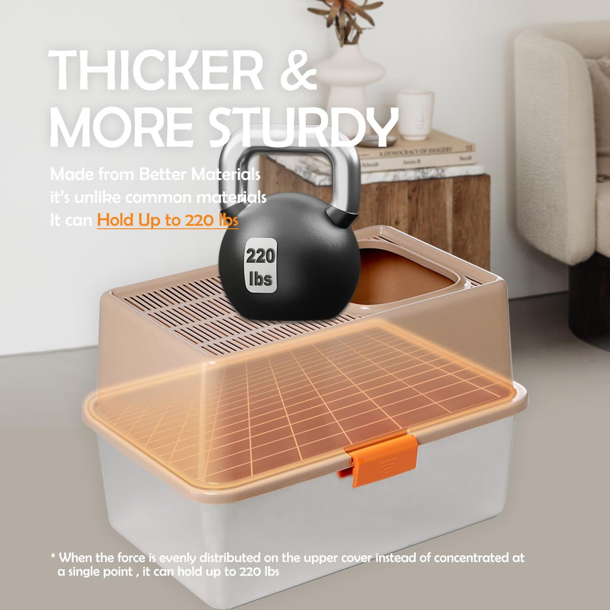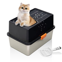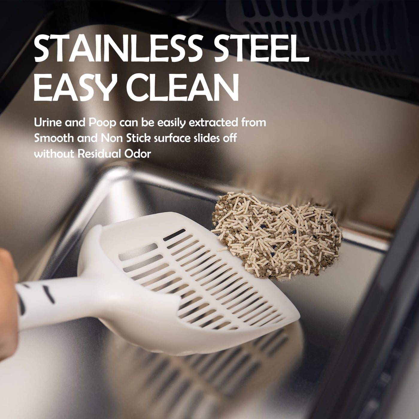 Meexpaws Stainless Steel Cat Litter Box Top Entry Xl Large With Lid, 8'' High Side Metal Cat Litter Box For Big Cats, Top Cover