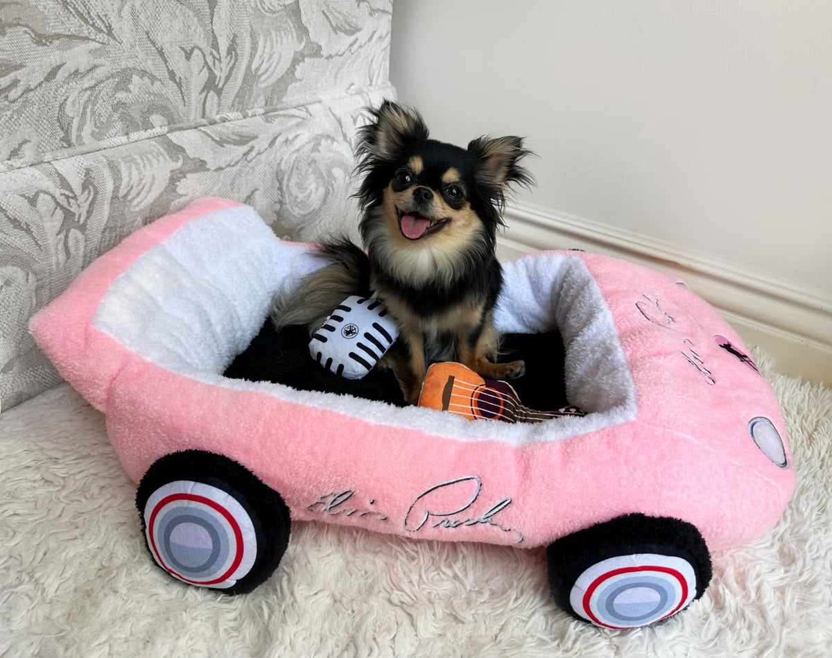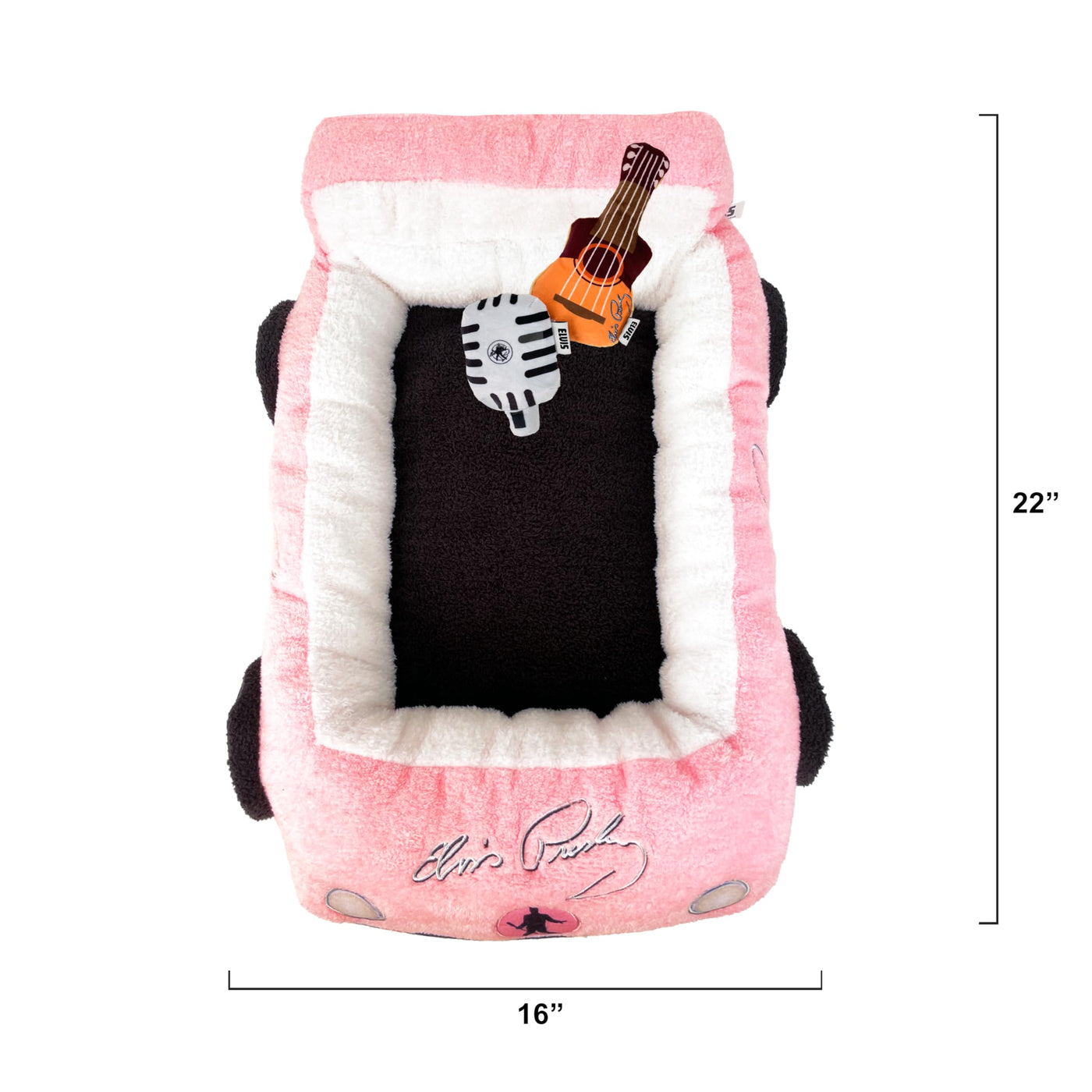 Megatoys Elvis Plush Car Pet Bed - Pink Pet Bed With Musical-Design Pillows And Elegant Car Styling