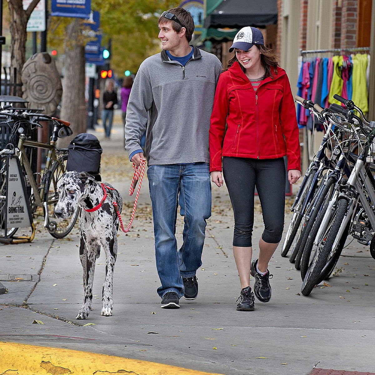 Q: What materials are used in the Mendota Pet Snap Leash?A: The Mendota Pet Snap Leash is crafted from durable multi-filament polypropylene, which is waterproof and colorfast. It also features solid brass hardware and oil-tanned leather splices for added strength and longevity.