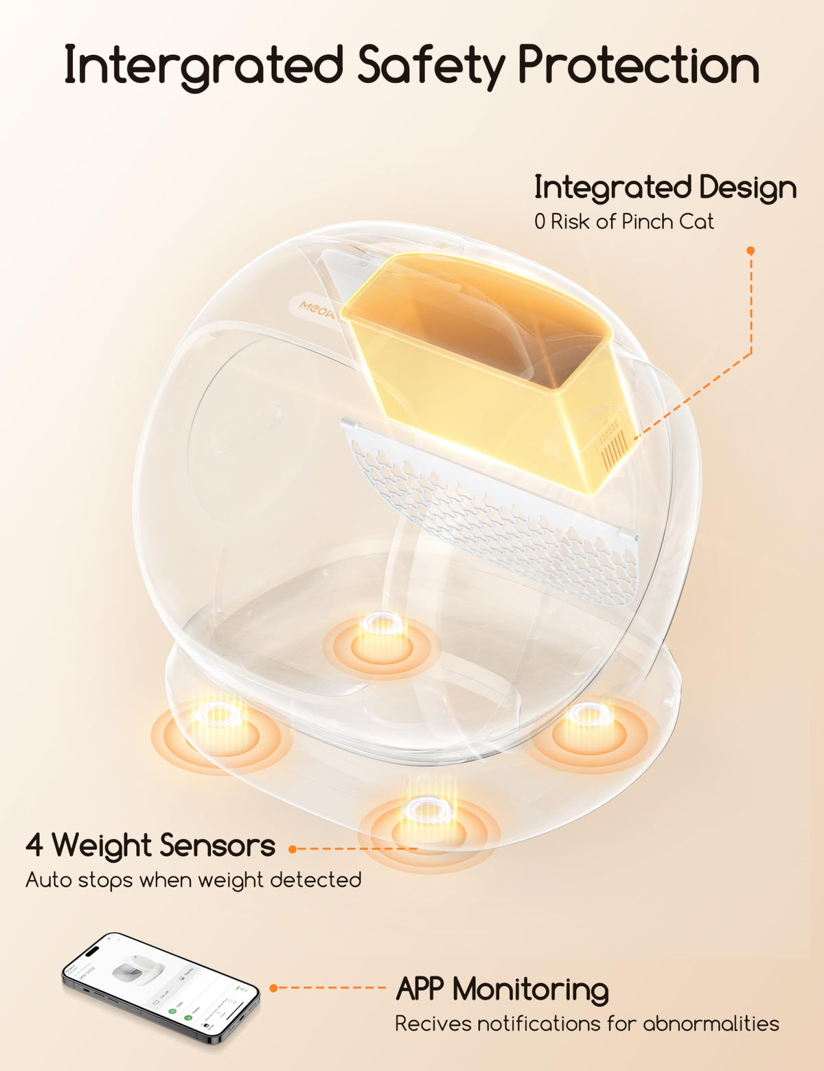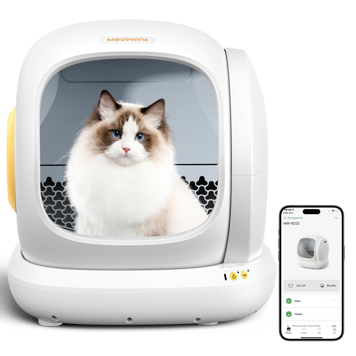 Meowant Self-Cleaning Cat Litter Box, 75L Extra Large Open Automatic Cat Litter Box For Multi Cats, Integrated Safety Protection