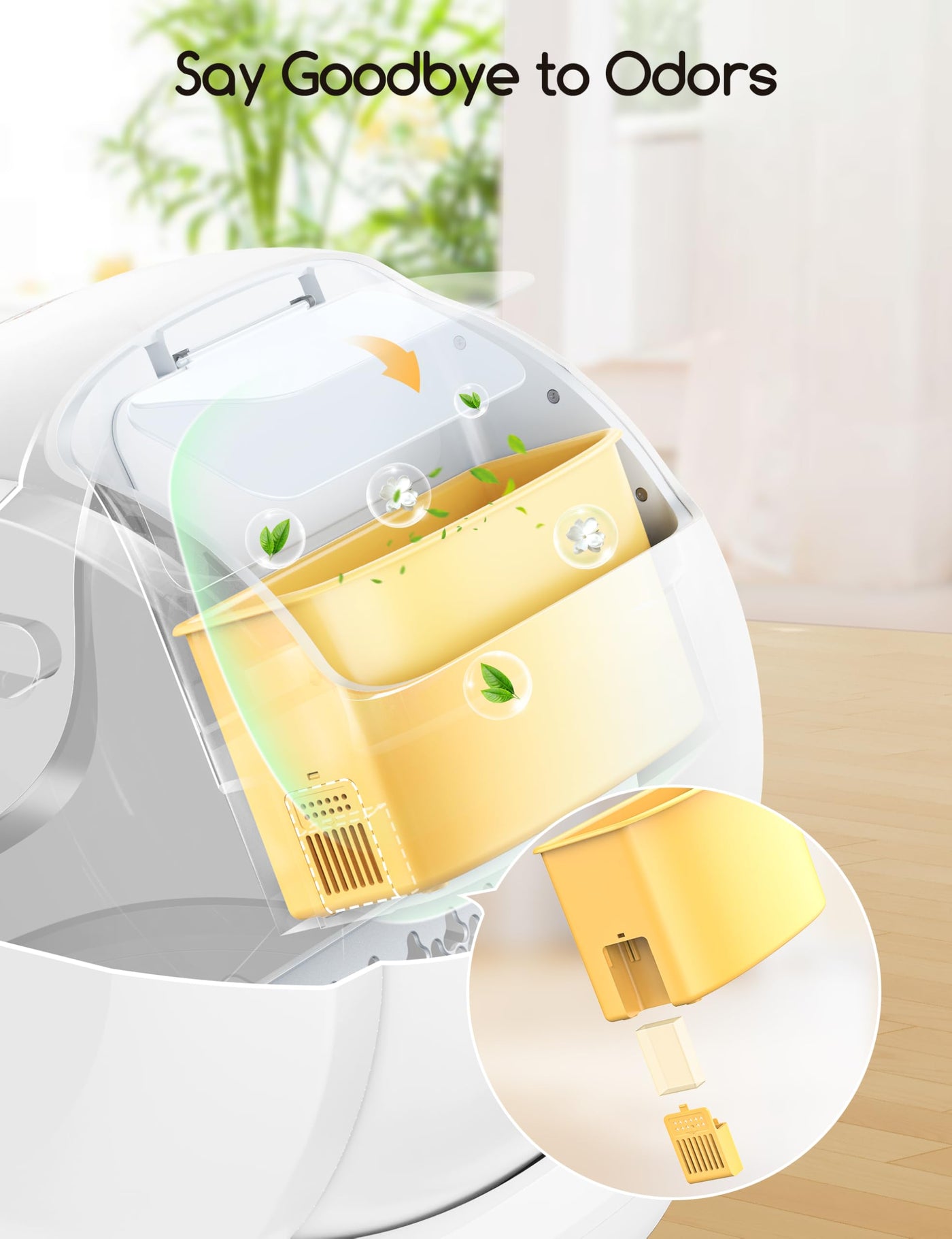 Main Material: Pp Rated Voltage: 12V/1A Rated Power: 12W Product Size: 506 490 547Mm Product Weight: 7.5Kg Internal Use Space: 75L Scope Of Application: Cats Over 4 Months Old Or Weighing 3-22Lb Applicable Cat Litter: Bentonite Mineral Sand, Mixed Sand, Bean Curd Sand And Other Cat Litter, Not Suitable For Crystal Cat Litter, Paper Cat Litter, And Wood Cat Litter. Package Included Items: Meowant Litter Box, Litter Mat, Litter Bags, Deodorant Gels, Adapter, User Manual. Please Read The Instructions Carefully Before Use To Ensure The Safe Use Of Cats! Notice : 1. Please Take Out All Items In The Trash Bin Before Use. 2. The Cat Litter Box Must Be Placed On A Solid And Flat Ground, Not On Carpet; 3. It Is Forbidden To Drag The Cat Litter Box, Otherwise The Bottom Sensor Will Malfunction; 4. The Garbage Must Not Exceed The Maximum Liquid Level Mark In The Barrel. If You Have Any Questions, Please Feel Free To Contact Us.