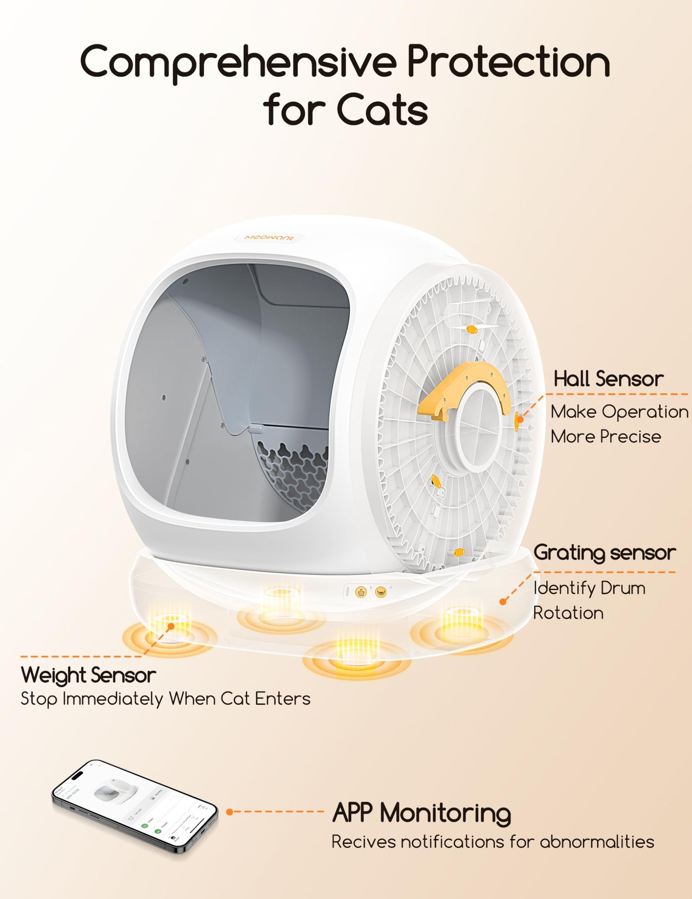 Meowant Self Cleaning Cat Litter Box, Open-Top Automatic Cat Litter Box With Safety Protection, App Control, Odor-Free, 75L Larg