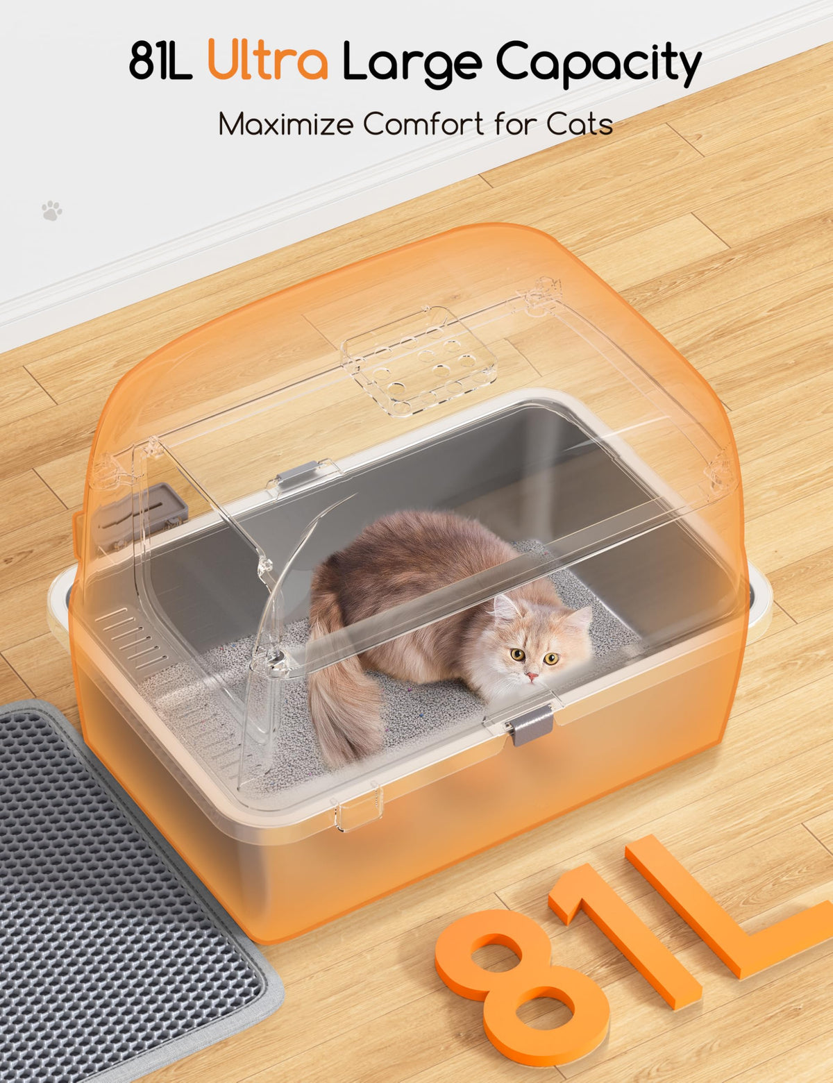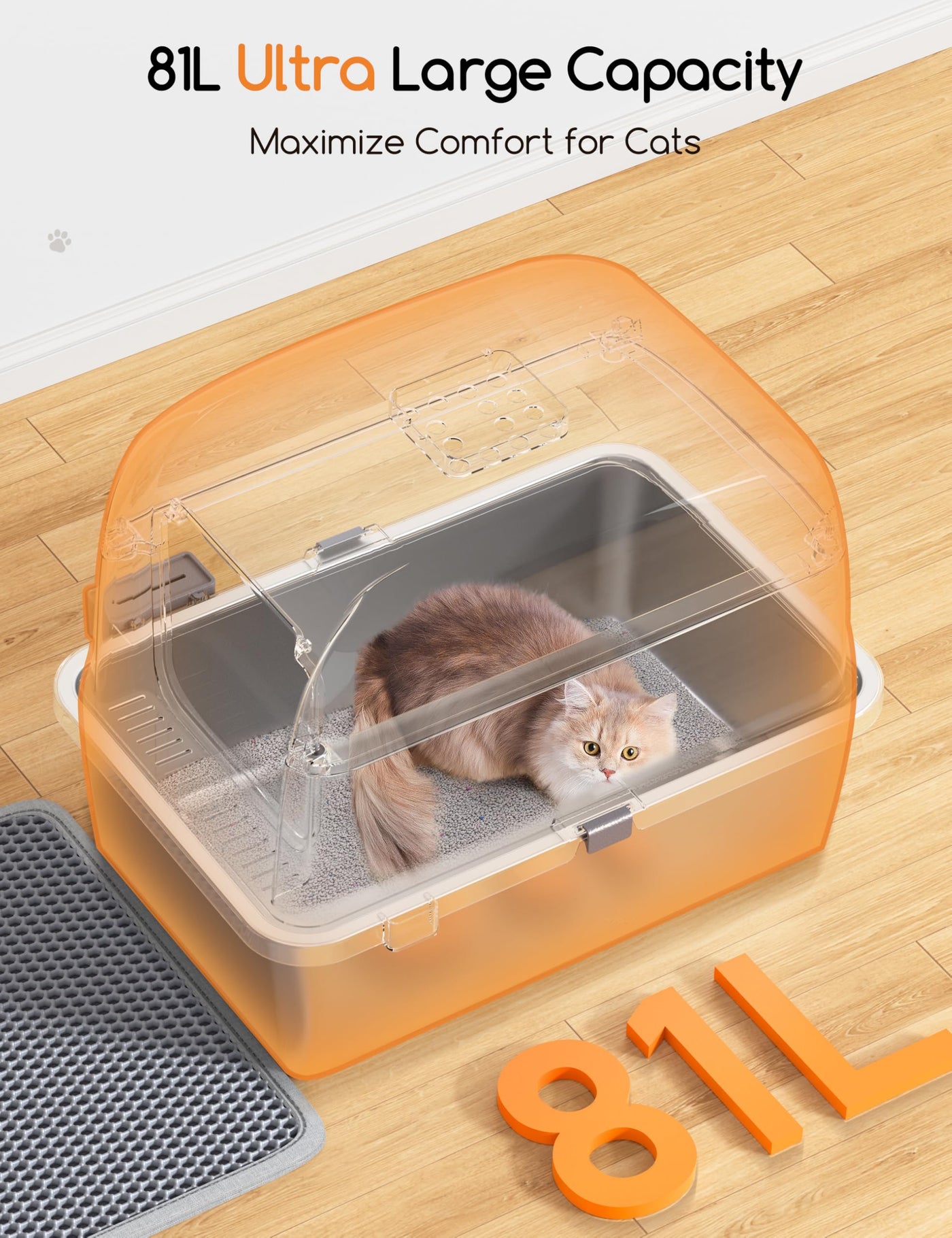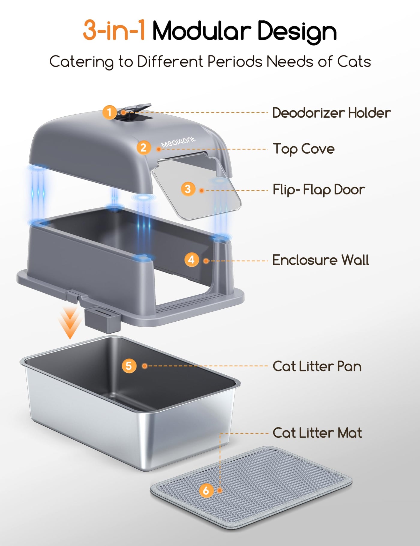 Meowant Stainless Steel Cat Litter Box 2Pcs, Extra Large 3-In-1 Enclosed/Open Top Metal Litter Box With Lid, Odorless Cat Litter