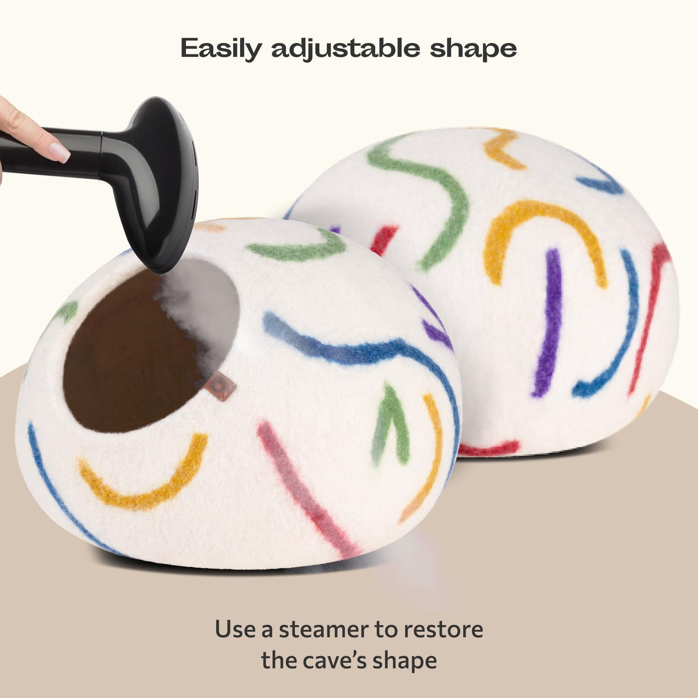 Meowfia Cat Cave - Premium Felt Cat Bed For Indoor Cats, Handmade 100% Merino Wool (Vivid Shades) (Large, Ivory Rainbow)