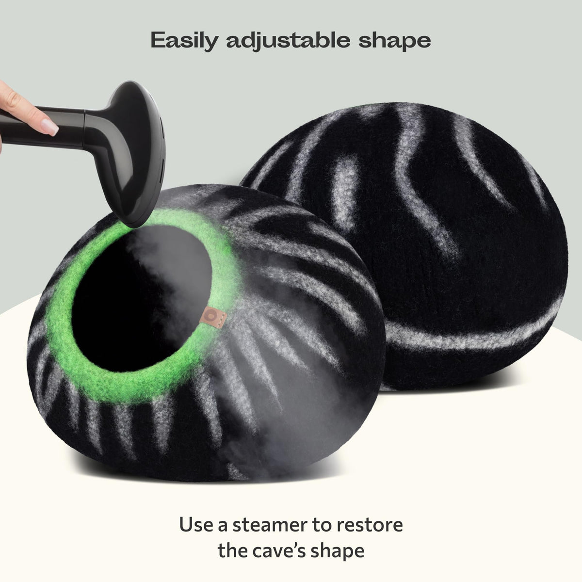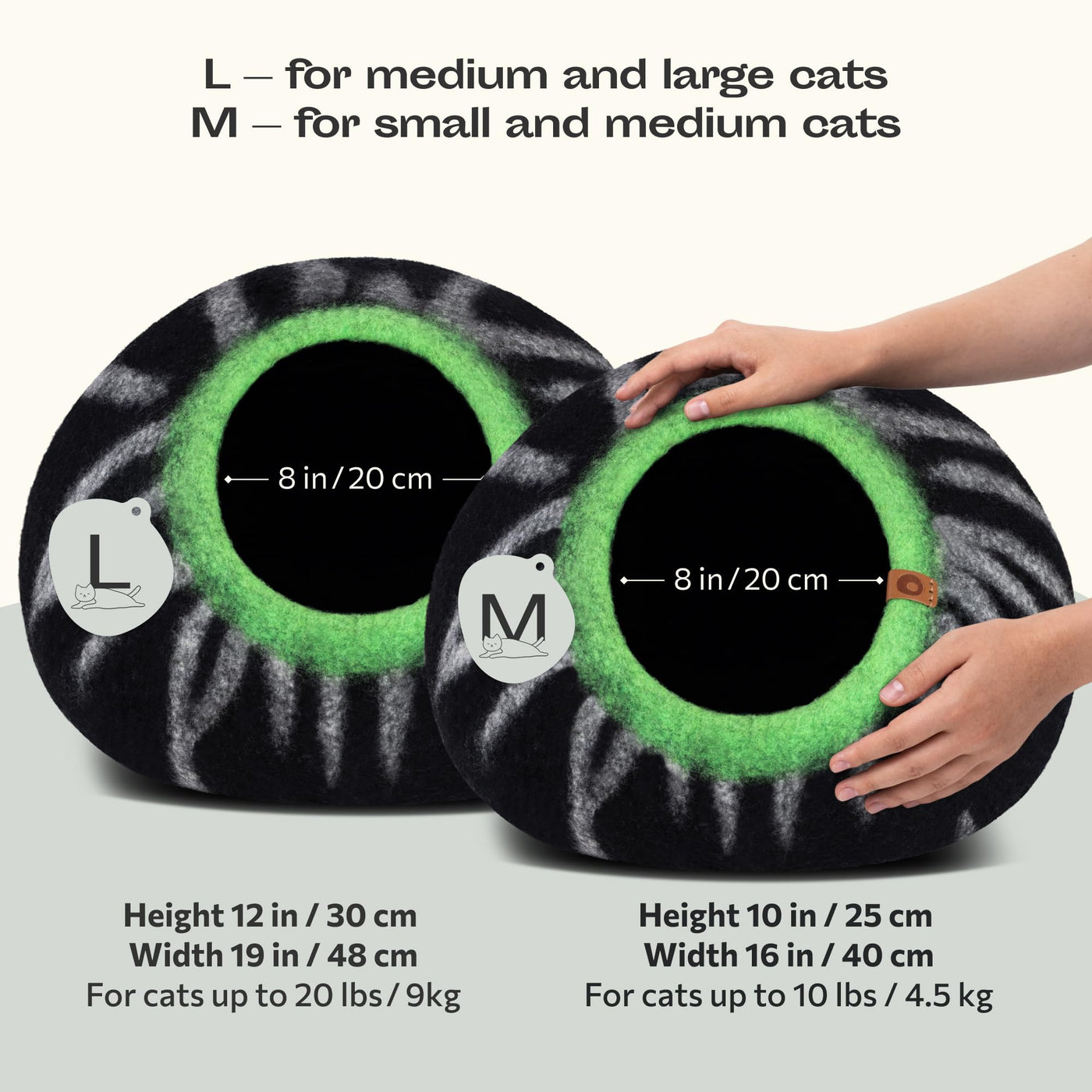 Meowfia Cat Cave - Premium Felt Cat Bed For Indoor Cats, Handmade 100% Merino Wool (Vivid Shades) (Large, Shining Tiger)