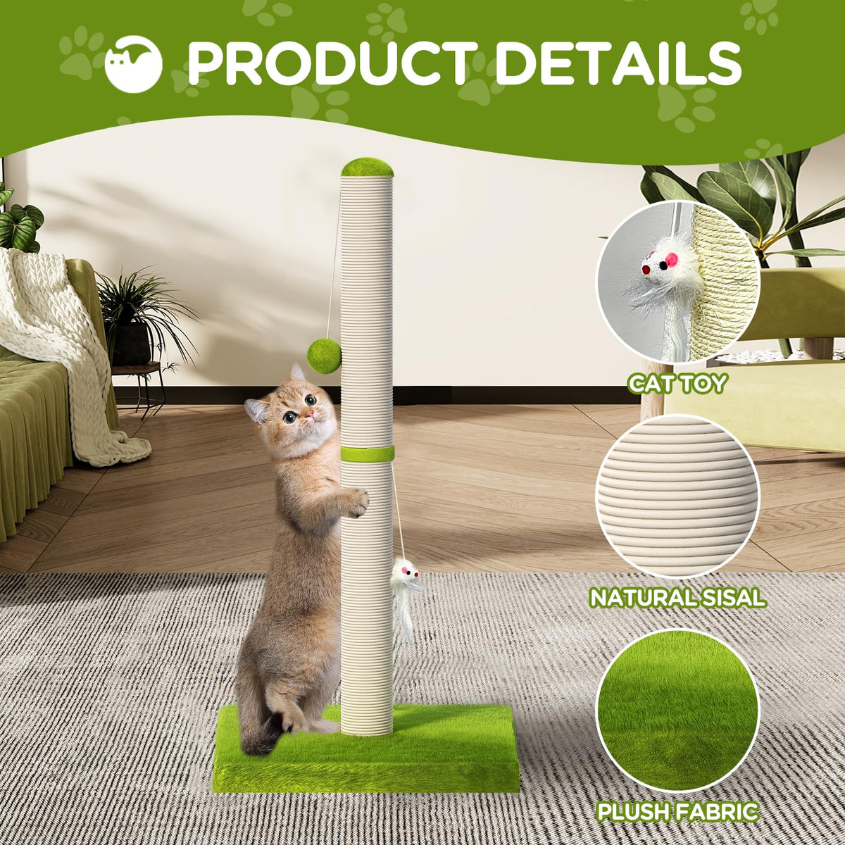 Meowhomm 32 Tall Cat Scratching Posts For Indoor Adult Cats And Kittens With 2 Hanging Balls, Large Cat Scratch Post Cat Scra