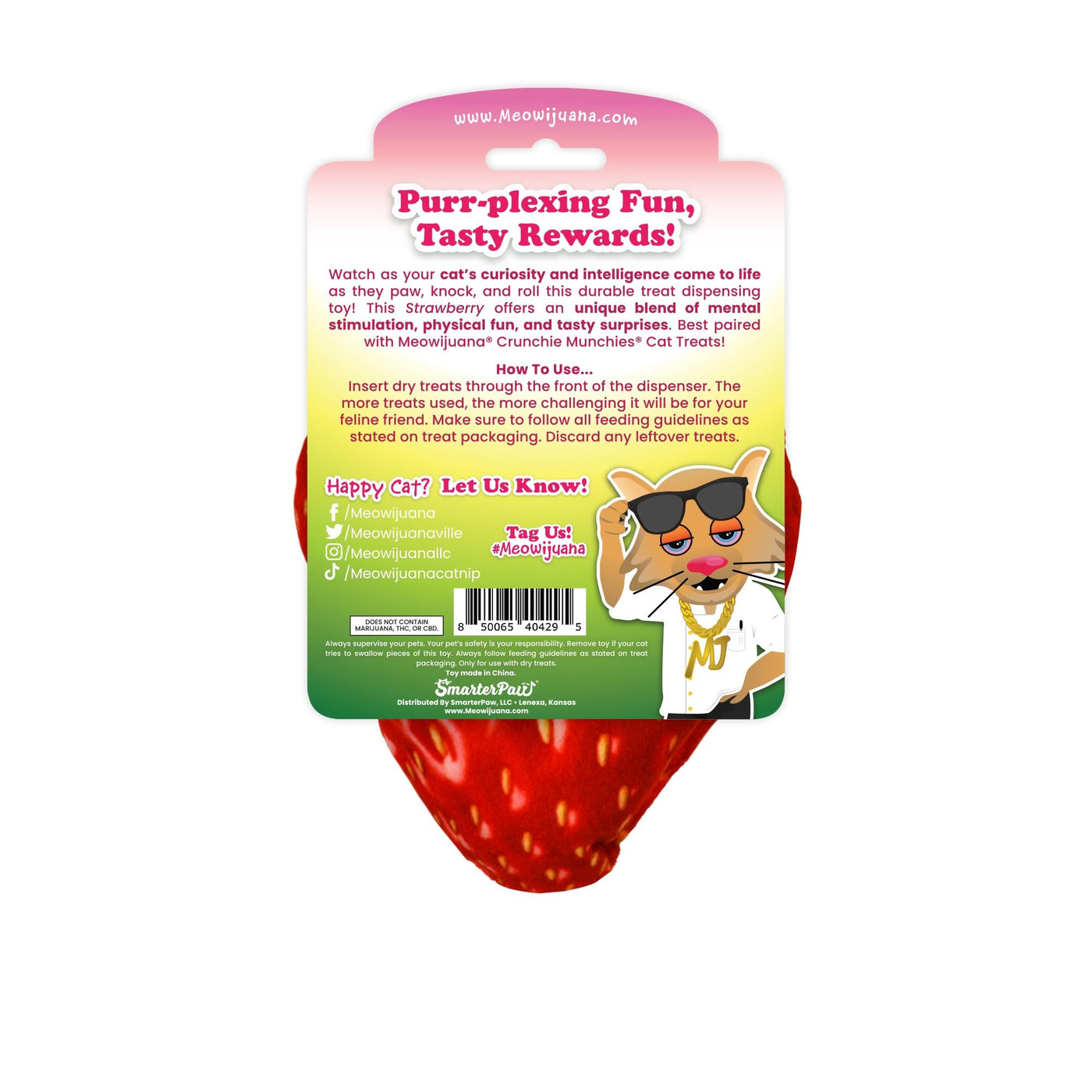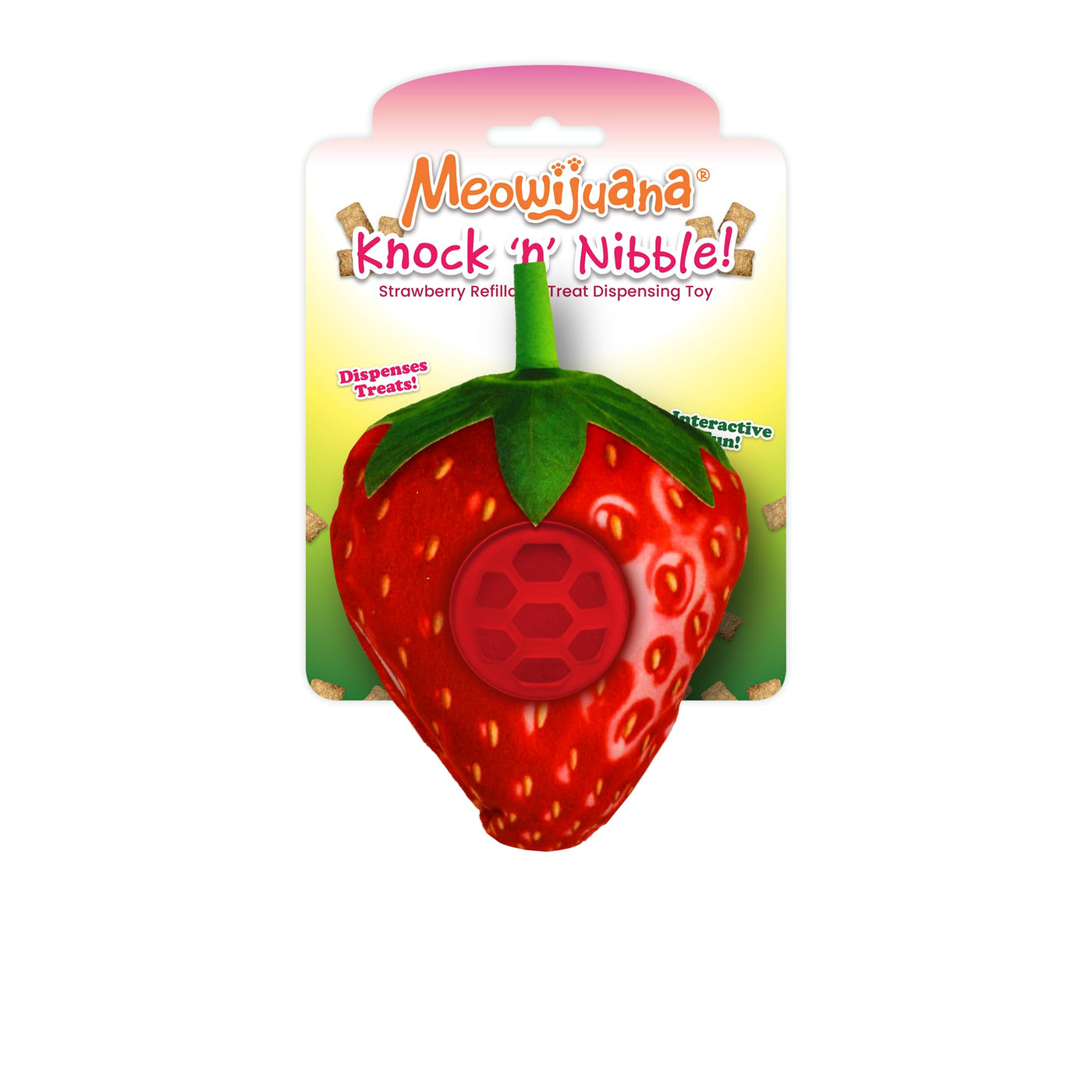 Meowijuana | Knock N' Nibble Strawberry | Refillable Treat Dispensing Toy | Promotes Play And Cat Health