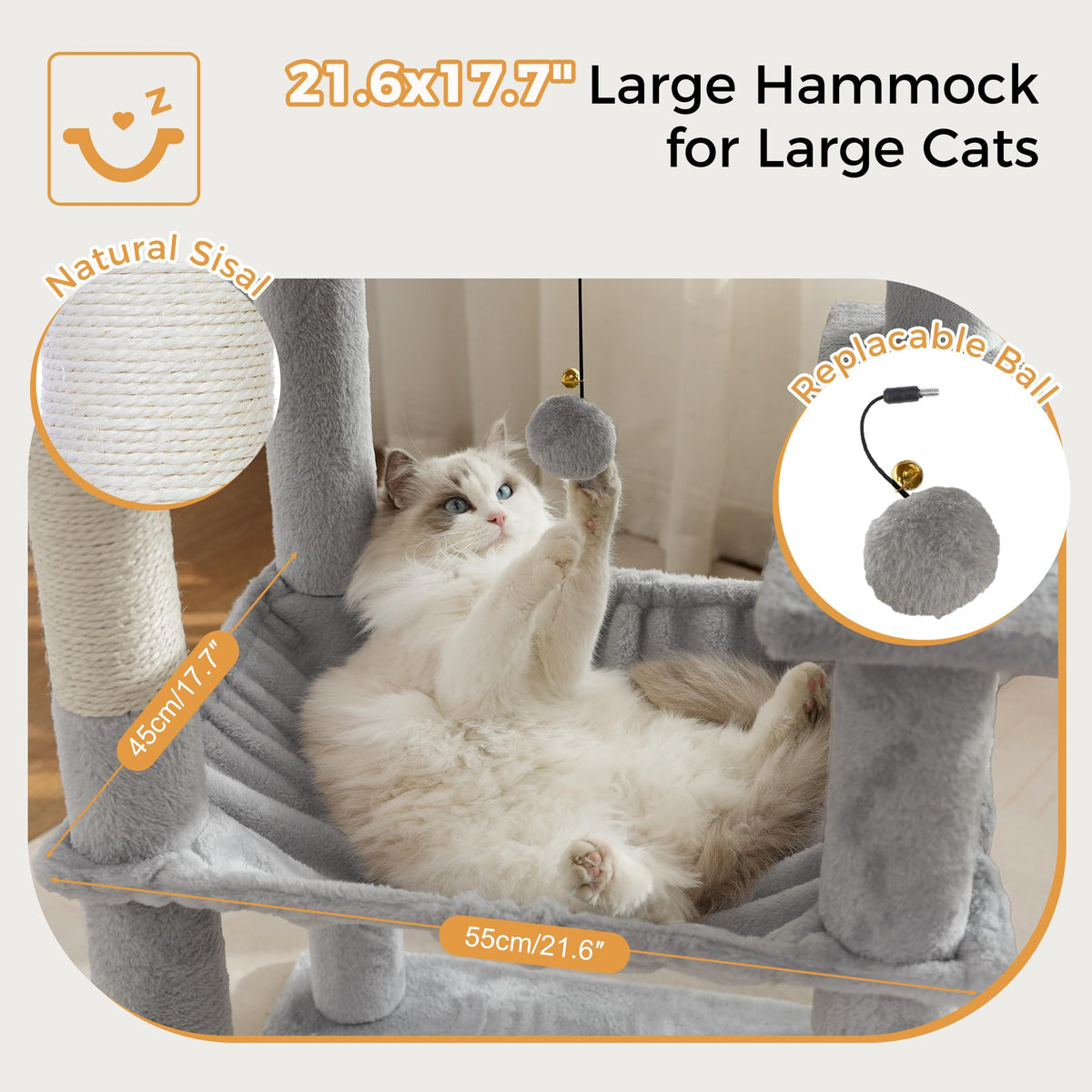 Looking For The Perfect Cat Tree For Indoor Cats? This 72 Inch Cat Tree Is Designed With Your Large Adult Cats In Mind. Whether You Have A Maine Coon, A Big Cuddly Feline Over 20 Lbs, Or Simply Need A Tall Cat Tower For Large Cats, This Extra-Large Cat Tree Delivers The Comfort, Stability, And Entertainment They Deserve. This Cat Tower For Large Cats Is Built To Accommodate Heavy-Duty Needs, Making It Ideal For Breeds Like Maine Coons Or Other Big Cats. With A Roomy Condo, Oversized Hammock, And Sturdy Perches, Your Cats Have Ample Space To Climb, Lounge, And Scratch. Made From High-Quality Materials, This Sturdy Cat Tree For Large Cats Features A Thick Base And Reinforced Posts. Whether Youre Looking For A Cat Tree Large Cats 20 Lbs+ Or An Adult Cat Tower, Its Built To Handle The Weight And Energy Of Large, Active Cats. The Hammock For Large Cats Is Spacious And Cozy, Perfect For Your Furry Friends To Stretch Out And Relax. With Soft Perches And A Secure Condo, This Cat Tree Large Adult Cats Ensures Ultimate Comfort For Cats Seeking A Peaceful Hideaway. Equipped With Multiple Scratching Posts And A Horizontal Woven Pad, This Tall Cat Tree For Large Cats Keeps Your Feline Entertained While Protecting Your Furniture. The Posts Are Wrapped In Durable Sisal, Making It The Ultimate Cat Tower With Scratching Post For Large Cats. Whether You Need A Cat Tree For Fat Cats, An Extra Tall Cat Tree, Or A Large Cat Tower For Big Cats, This Tower Checks All The Boxes. Its Easy To Assemble With Detailed Instructions, Making It A Breeze To Set Up In Your Home. Give Your Feline Friend The Gift Of A Tall Cat Tower For Indoor Cats Thats Equal Parts Stylish, Durable, And Fun. Perfect For Multi-Cat Households Or As A Standalone Centerpiece For Your Big Cat, This Is The Extra-Large Cat Tower Theyve Been Dreaming Of!