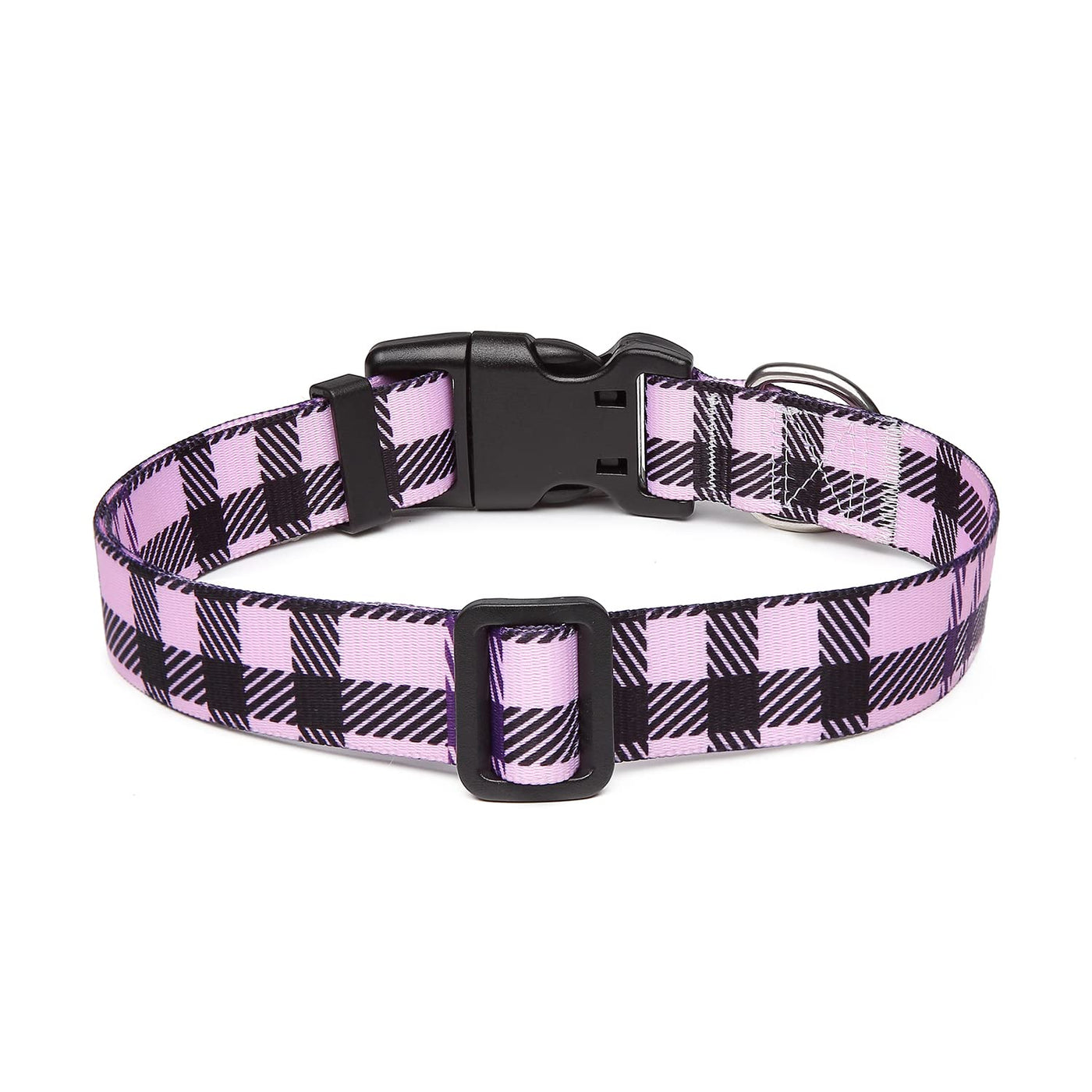 Mercano Adjustable Dog Collar - Special Design Patterns, Soft Nylon Comfortable Durable Pet Collar For Small Medium Large Dogs (L, Purple Plaid)