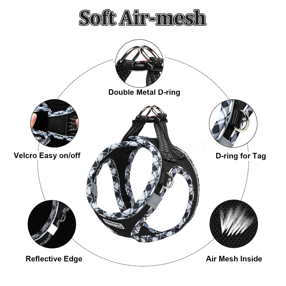 Mercano Step-in Dog Harness and Lead Set, Soft Mesh Reflective Vest Harness for Small Cats, Dogs Specifications: Material: Air Mesh Polyester Color: Pink, Beige, Grey, Light Green, Champagne, Red, Black, Fuchsia, Purple, Pink Blue, Orange Blue Package Including: 1 x dog harness and 1 x 140cm / 55 Dog Leash Features: Easy to Control, Step-in design for easy put on/off. First D-ring on side to clip the LED light or ID tag, second D-ring to attach the poop bag holder. Reflective strips design, 360-degrees surround pet harness, ensure dogs and cats safer under low light condition. Resistant hook and loop & quick-release safety buckle. Made of high density air mesh material, lightweight, breathable, comfortable. Suitable for: Chihuahua, Corgi, Teddy, Yorkshire Terrier, Doberman, Pomeranian, Papillon, Poodle, Shih Tzu, Pekingese, Miniature Schnauzer, Maltese, French Bulldog, English bulldog.