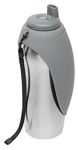 Messy Mutts Stainless Steel Travel Water Bottle With Silicone Flip Up Bowl | Pet Travel Necessity | Camping, Hiking, Walking Accessory | 24 Oz / 700Ml | Grey