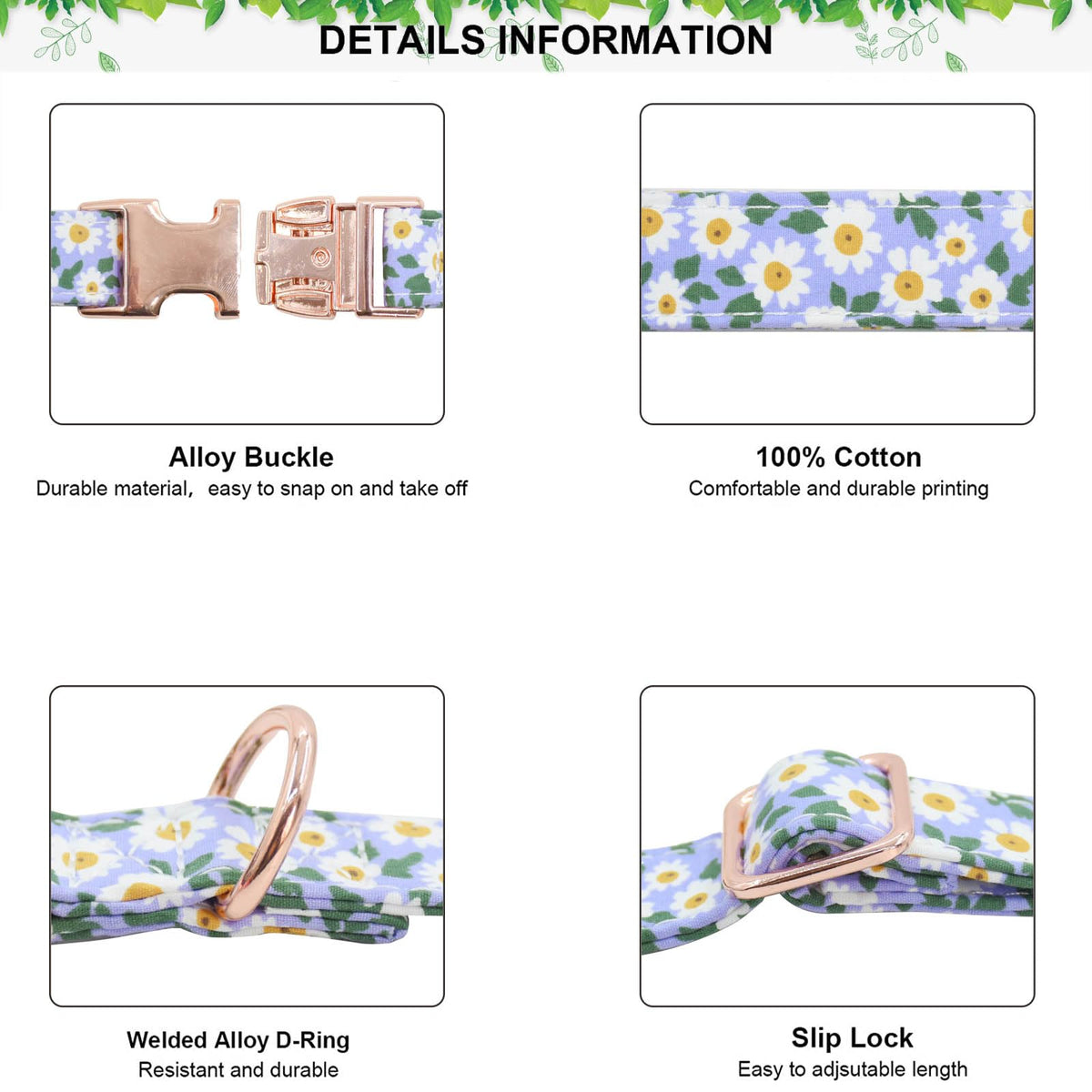 Metal Buckle Dog Collar, Durable Adjustable Dog Collar Soft For Small Medium Large Dogs (002-Purple Flower, S(10-14In)