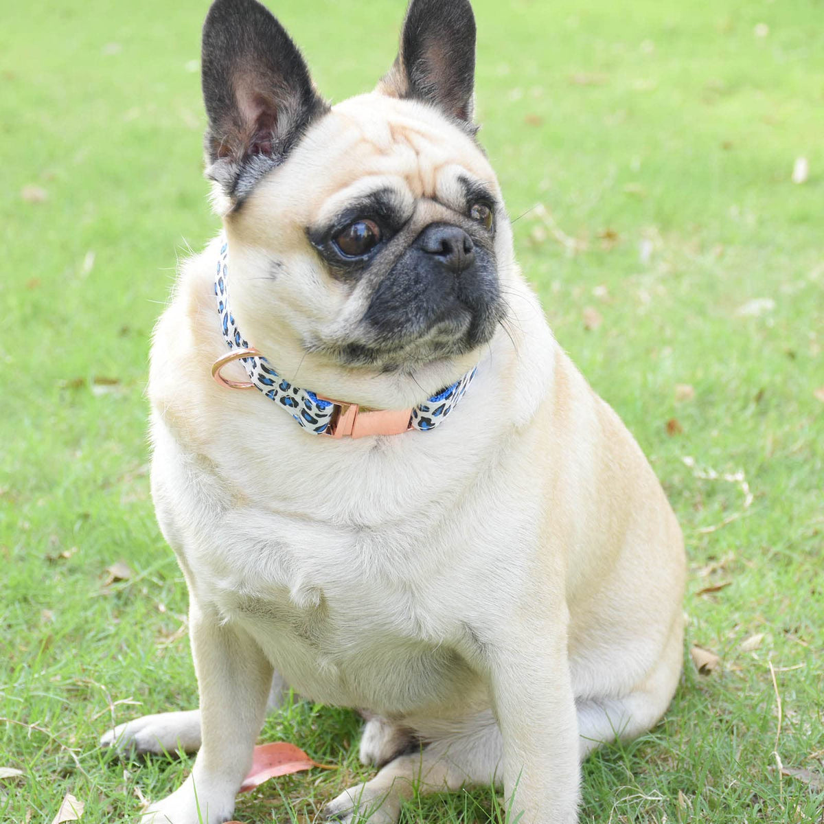 Metal Buckle Dog Collar, Durable Adjustable Dog Collar Soft For Small Medium Large Dogs (L(15-23In), Blue Leopard)