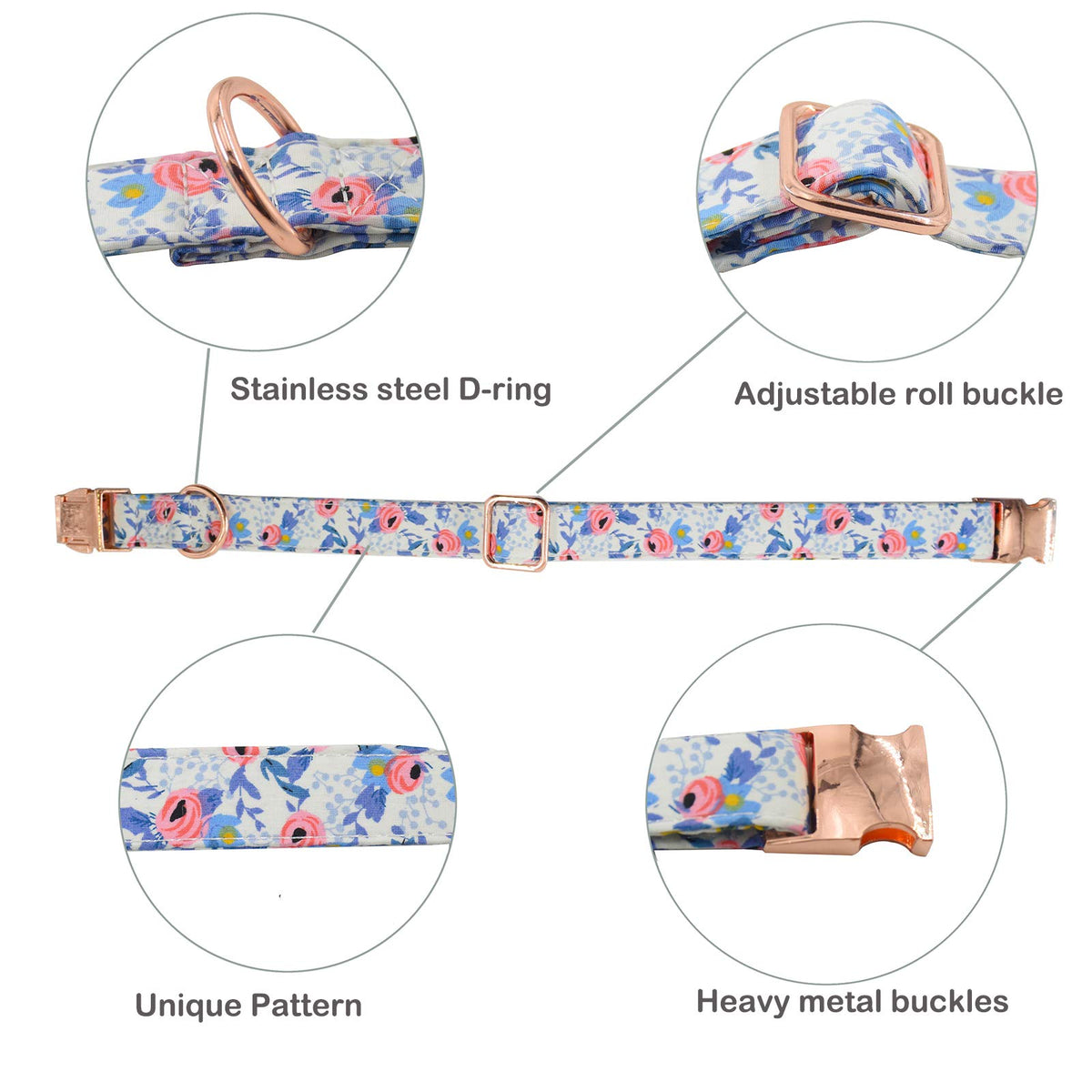 Metal Buckle Dog Collar, Durable Adjustable Dog Collar Soft For Small Medium Large Dogs (L(15-23In), Flower2)