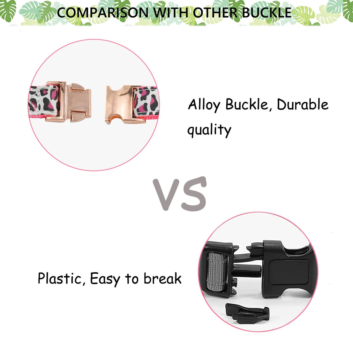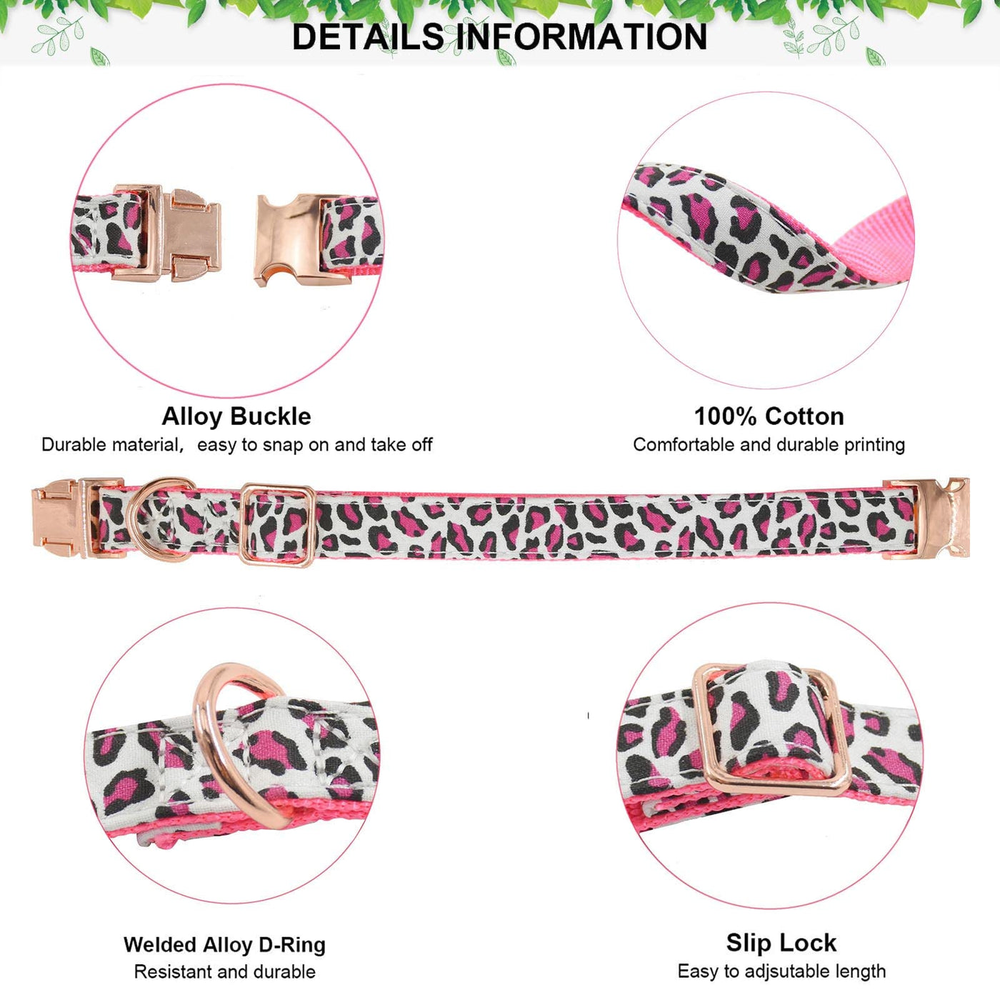 Metal Buckle Dog Collar, Durable Adjustable Dog Collar Soft For Small Medium Large Dogs (L(15-23In), Pink Leopard)