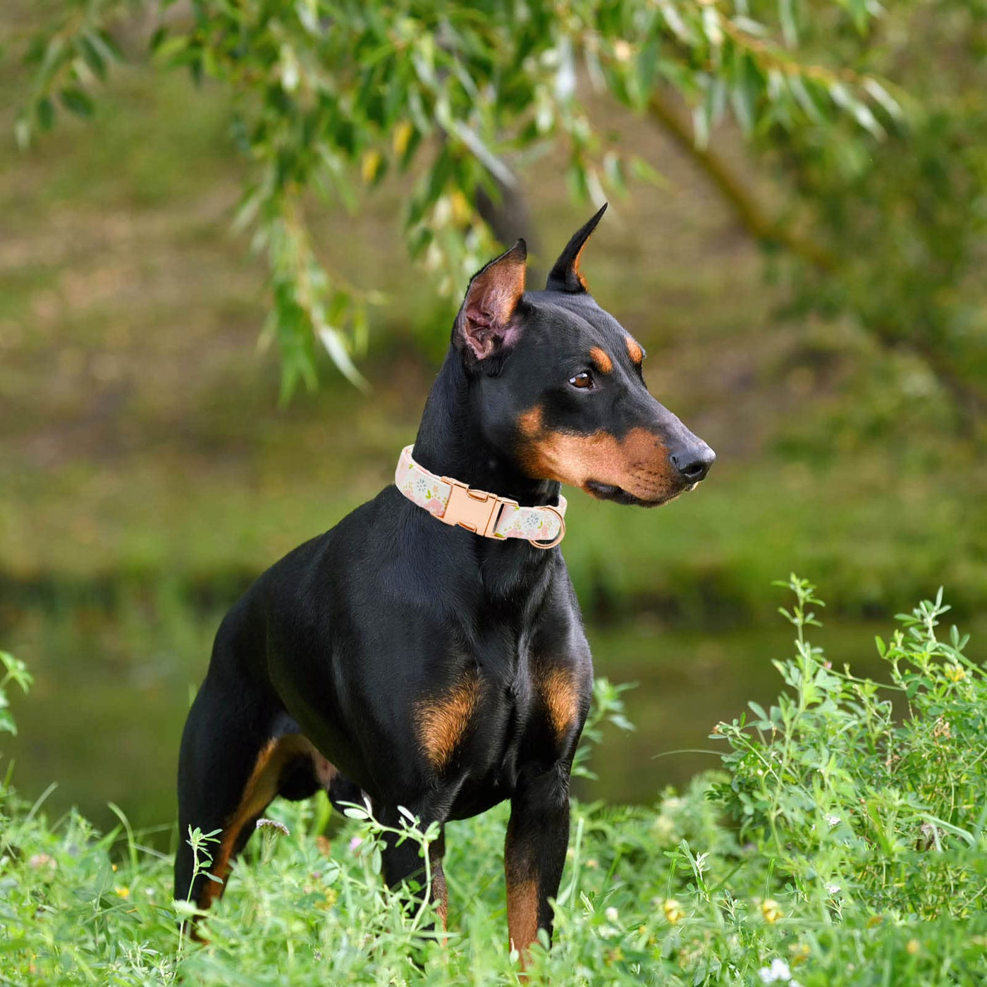 Metal Buckle Dog Collar, Durable Adjustable Dog Collar Soft For Small Medium Large Dogs (Pink Flowers, L(15-23In)