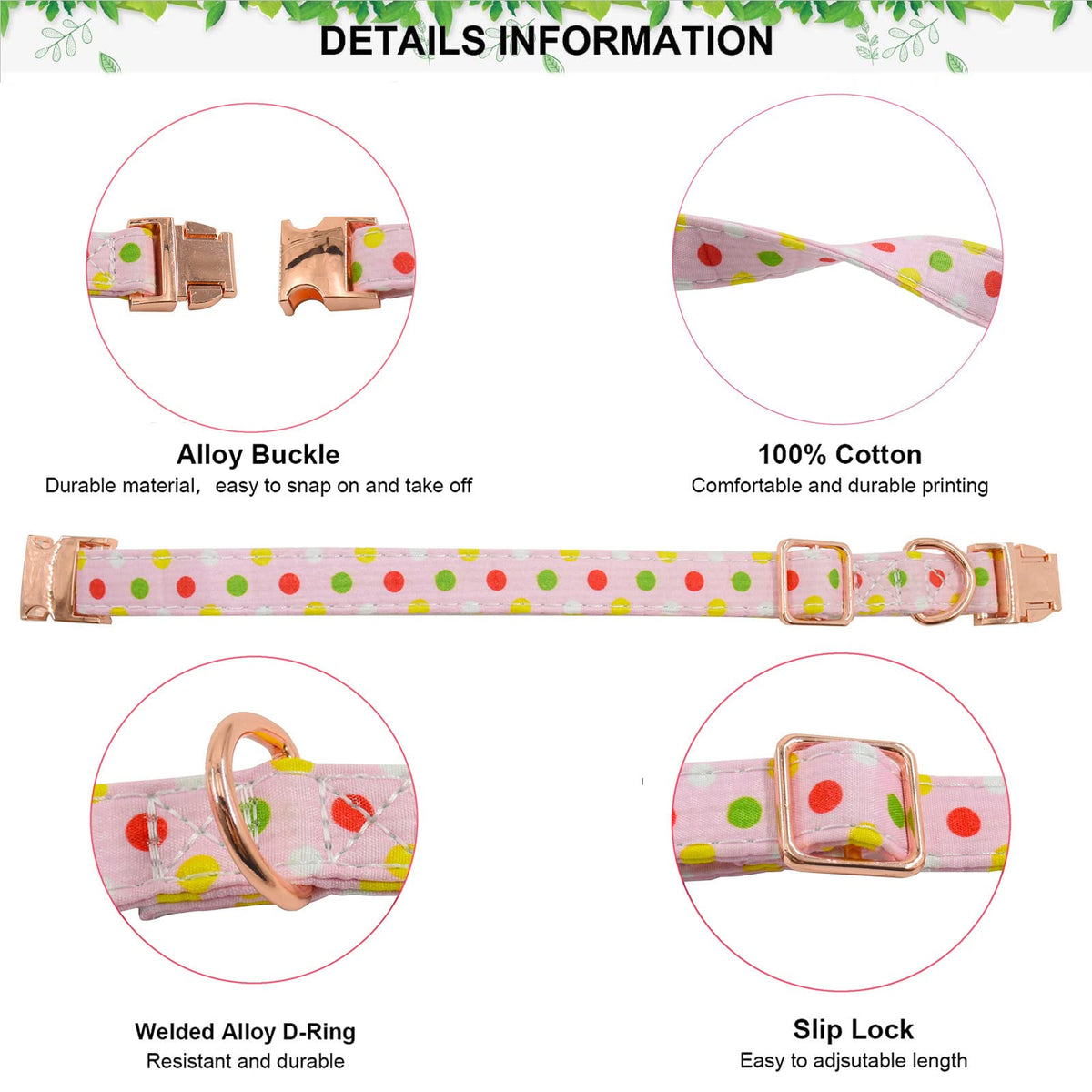 Metal Buckle Dog Collar, Durable Adjustable Dog Collar Soft For Small Medium Large Dogs (Pink Point, L(15-23In)