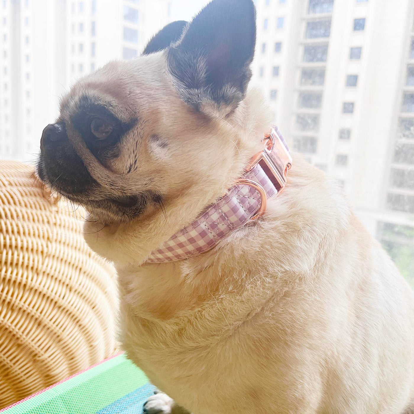 Metal Buckle Dog Collar, Durable Adjustable Dog Collar Soft For Small Medium Large Dogs (Purple Plaid, S(10-14In)