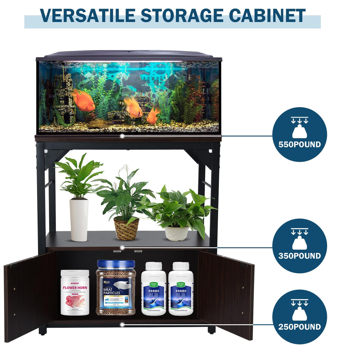 Metal Frame Aquarium Stand with Storage Cabinet - 29 Gallon Fish Tank Stand, 550LBS Capacity Walnut 30.7 L*16.5 W Tabletop