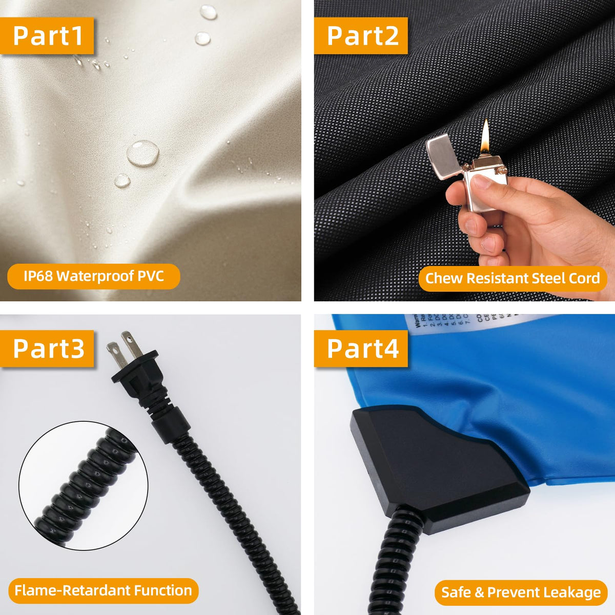 &Nbsp;Mewamaa Pet Heating Pad For Dogs And Cats,Temperature Adjustable Heated Cat Bed With 6 Temperature &Amp; 4 Timers Set Auto Offin Cold Days And Nights, The Electric Heated Dog Bed Allows You To Adjust The Appropriate Temperature For Your Pet Through 6 Heating Levels (86-131?/30-55?). In Addition, The Pet Heating Pad Also Has An Automatic Shut-Off Timer Function, Which Is Able To Set The Turn Off Time From 4 Time Ranges (4H/8H/12H/24H), Saving Energy And Preventing Burns Caused By Overheating. The Soft Cover Is Designed With A Zipper, Which Can Be Quickly Assembled Or Simply Disassembled For Machine Washing. If The Inner Pad Becomes Dirty, You Just Need To Wipe The Inner Pad With A Damp Cloth Instead Of Soaking It In Water. Don'T Let Your Pet Lie On A Pet Heating Pad Without A Plush Cover.Note: When Using The Pet Heating Pad, Please Keep The Heating Pad Flat For Use. Do Not Fold It During Use.