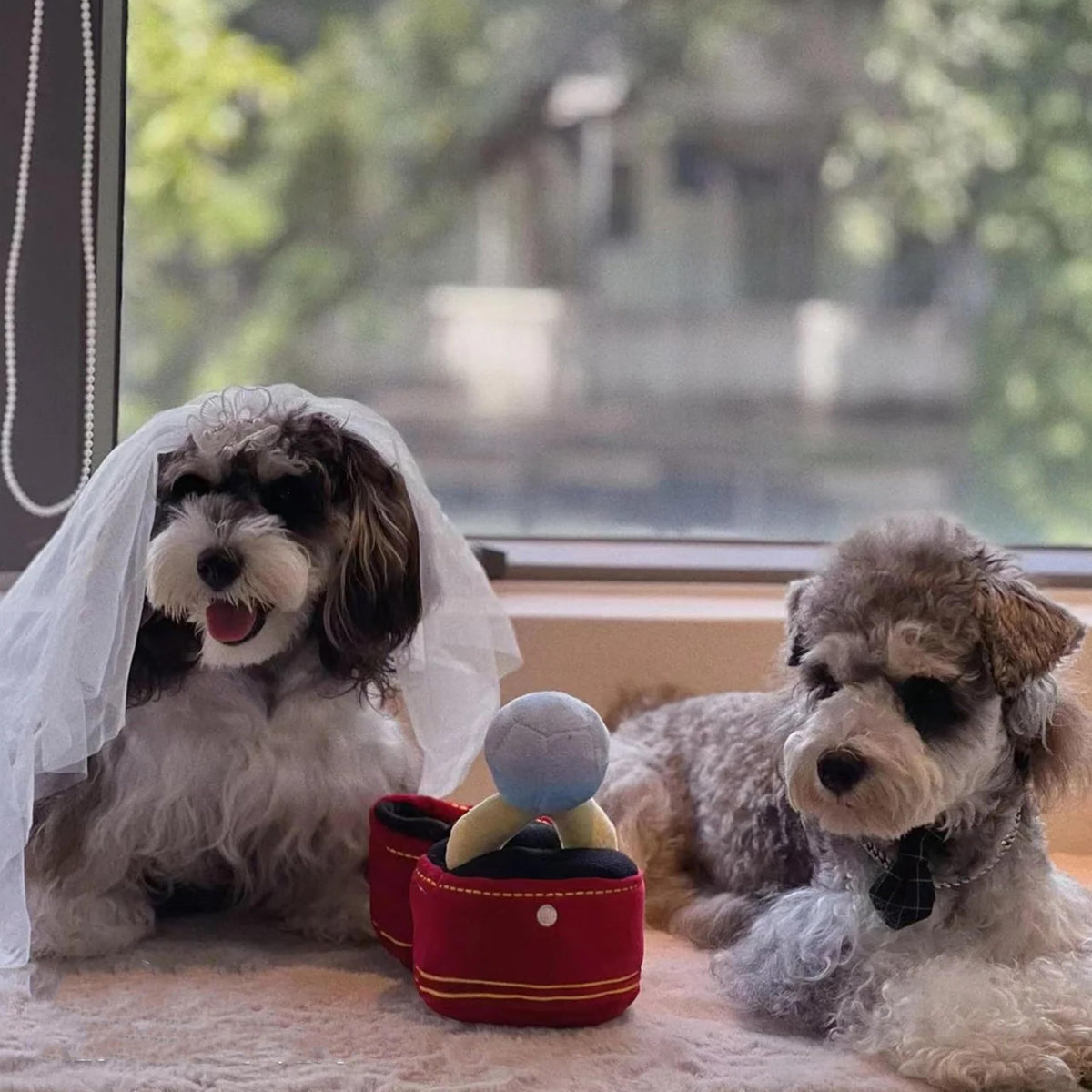 Mewcho Dog Wedding Toy Engagement Plush Ring Box For Dog Birthday Toy Gifts, Funny Dog Plush Toys Squeaky Chew For Party Supplie