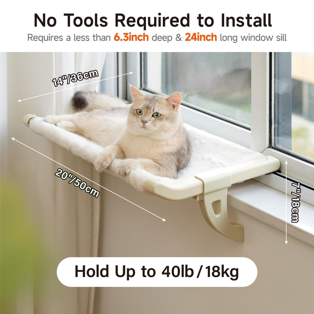 Mewoofun Cat Window Sill Perch For Indoor Cats, One-Step Sliding Clamping Slot Adjustment Cat Window Hammock With Removable Cove