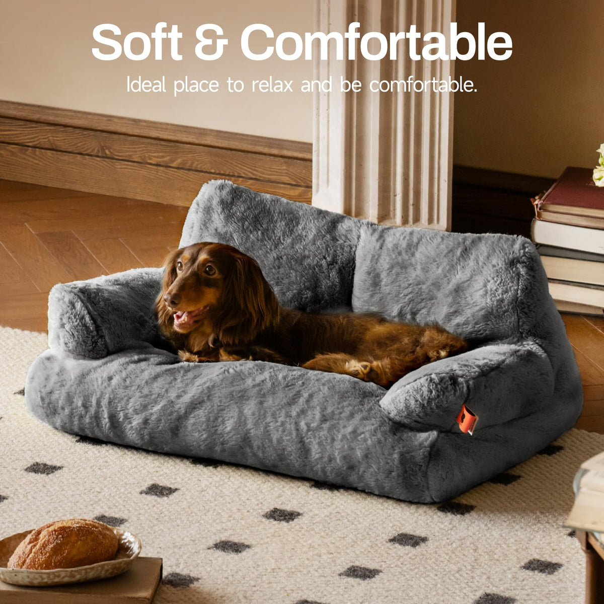 Mewoofun Dog Couch, Supportive Small Dog Bed For Puppy And Cats With Removable Washable Cover, Fluffy Cat Couch With Non-Slip Bo