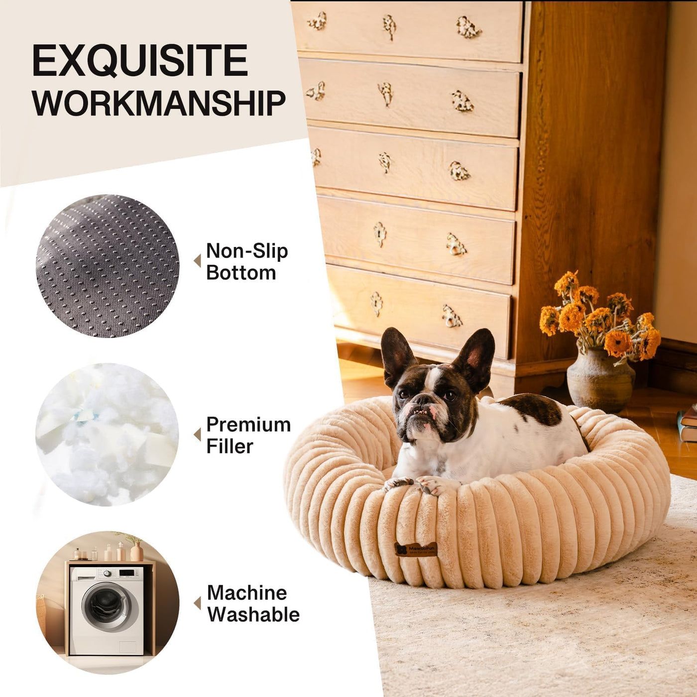 Mewoofun Donut Dog Beds For Small Dog, Calming Bed Round Cute Puppy Bed With Non-Slip Bottom, Fluffy Washable Pet Bed For Puppy