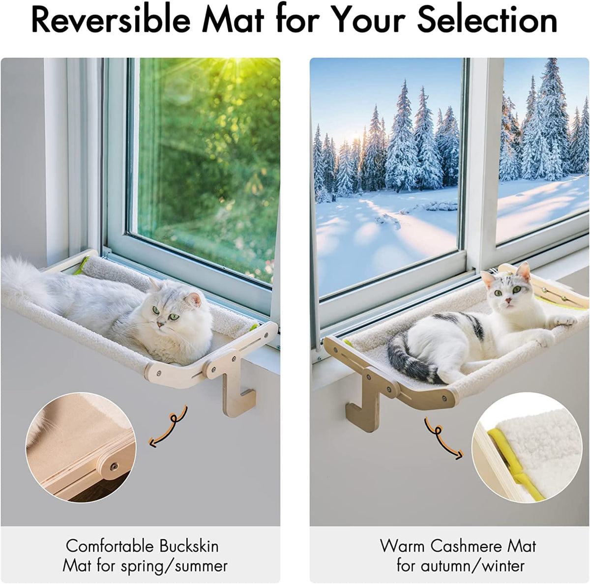 Mewoofun Sturdy Cat Window Perch Hammock - Reversible Mat, No Suction, No Drilling - Holds Up To 40Lbs (Beige)