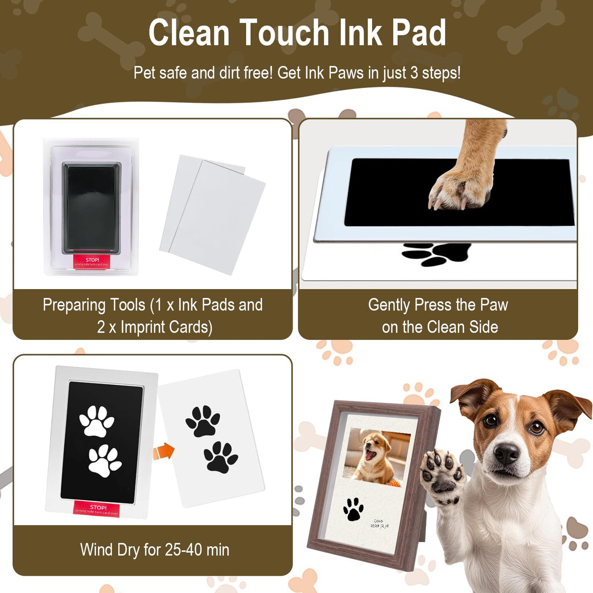 Mewzoo Dog Paw Print Kit,Personalized Pet Paw Print Impression Kit,Wood Cat Dog Memorial Picture Frame With No-Wash Ink Pad, Pen