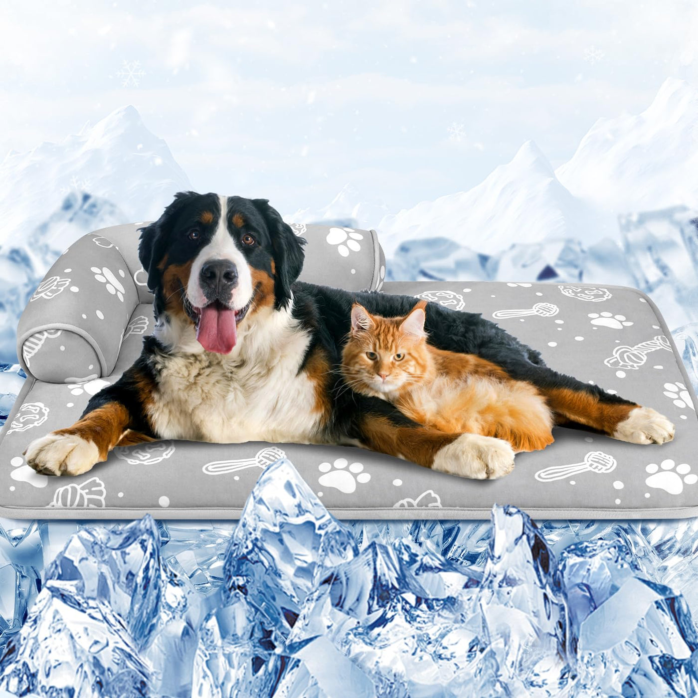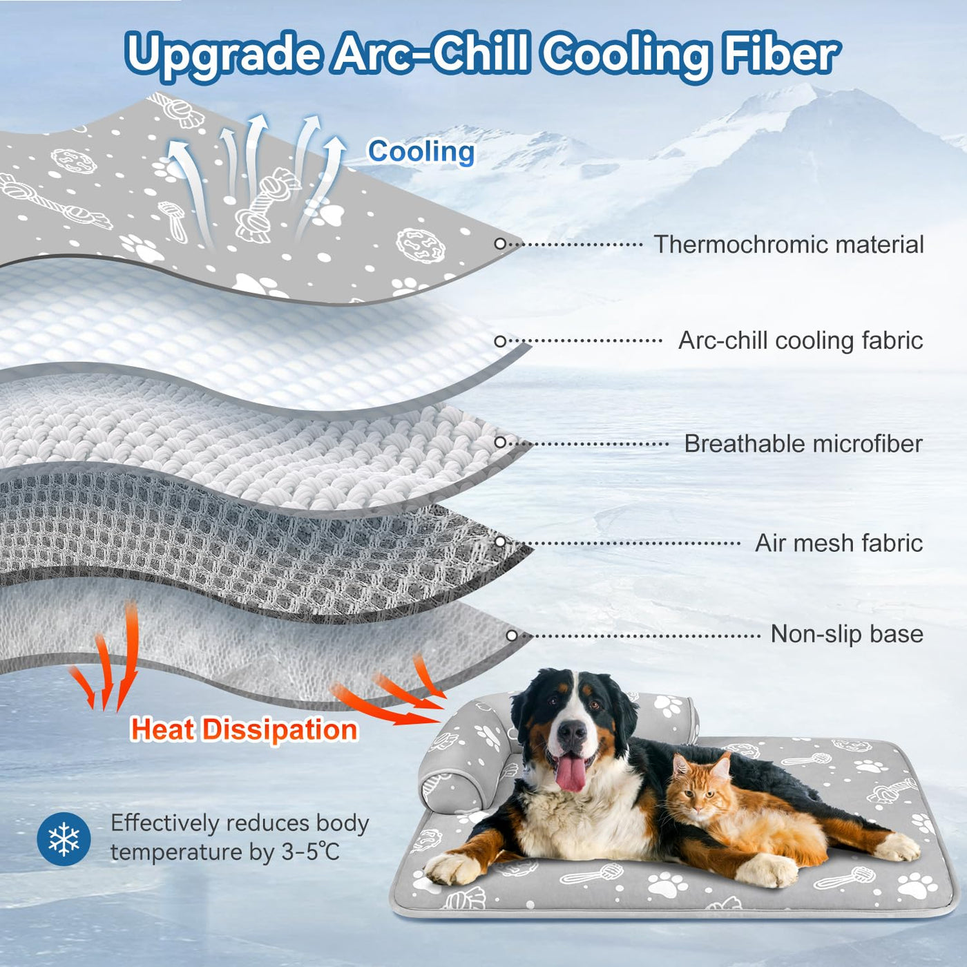 Mh Mylune Home Dog Cooling Mat With Supportive Pillows, 44''X32'' Arc-Chill Fiber & Endothermic Color Changing Self Cooling Pad,