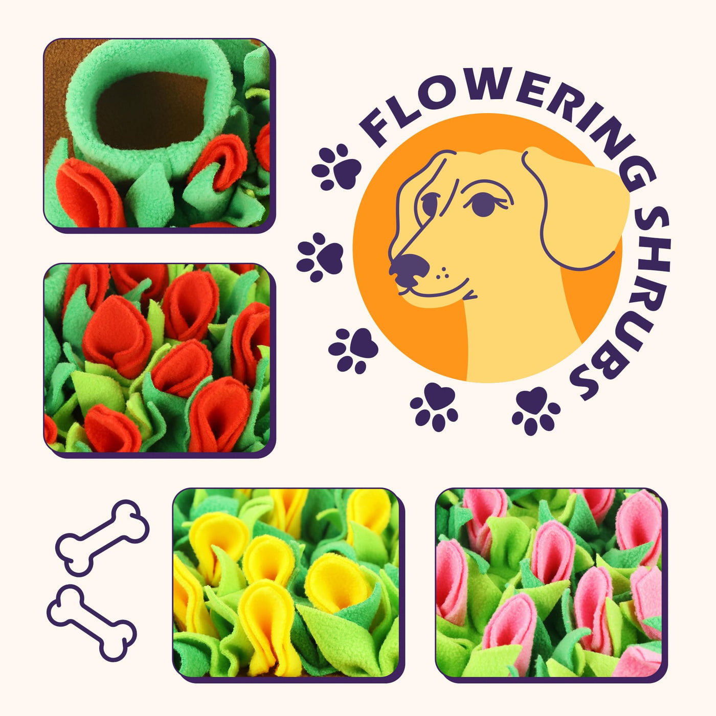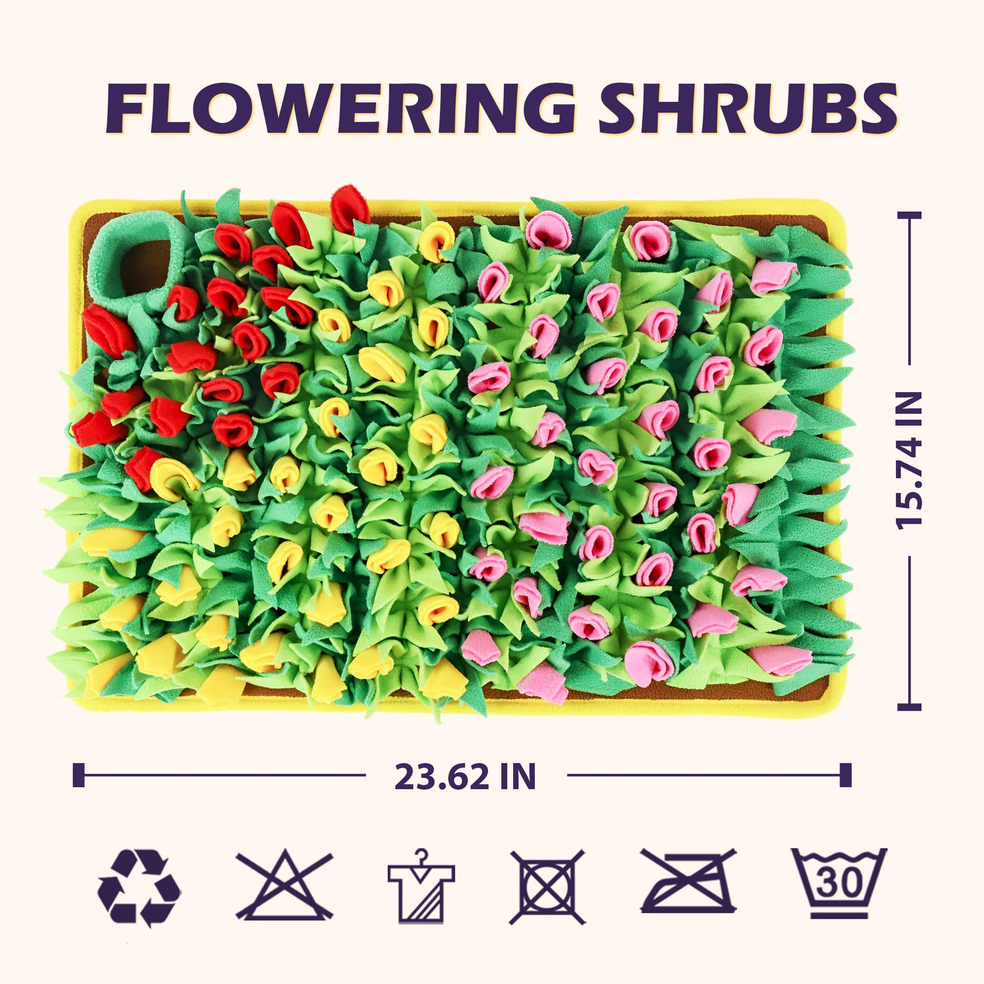 MHTTEC as far as the eye can see. MHTTEC Dog Sniffing Mat A unique dog training mat that allows your dog to find snacks or small toys hidden in the feeding mat. It helps train your dog's sense of smell, deplete its energy and keep weight easily. Using MHTTEC snuffle mats can keep your dog busy, avoid boredom and maintain good behavior. A necessity for dog lovers. Product Size: 60cm x 40cm Pattern: Tulip Flowering Shrubs Product Weight: 320 grams Material: Polar fleece and non-woven fabric Applicable Age: All Suitable For Dog Shape: All, best for small and medium dogs Tips: The product is sewn together with fabric, please pay attention to whether the dog has torn it off and swallowed it.