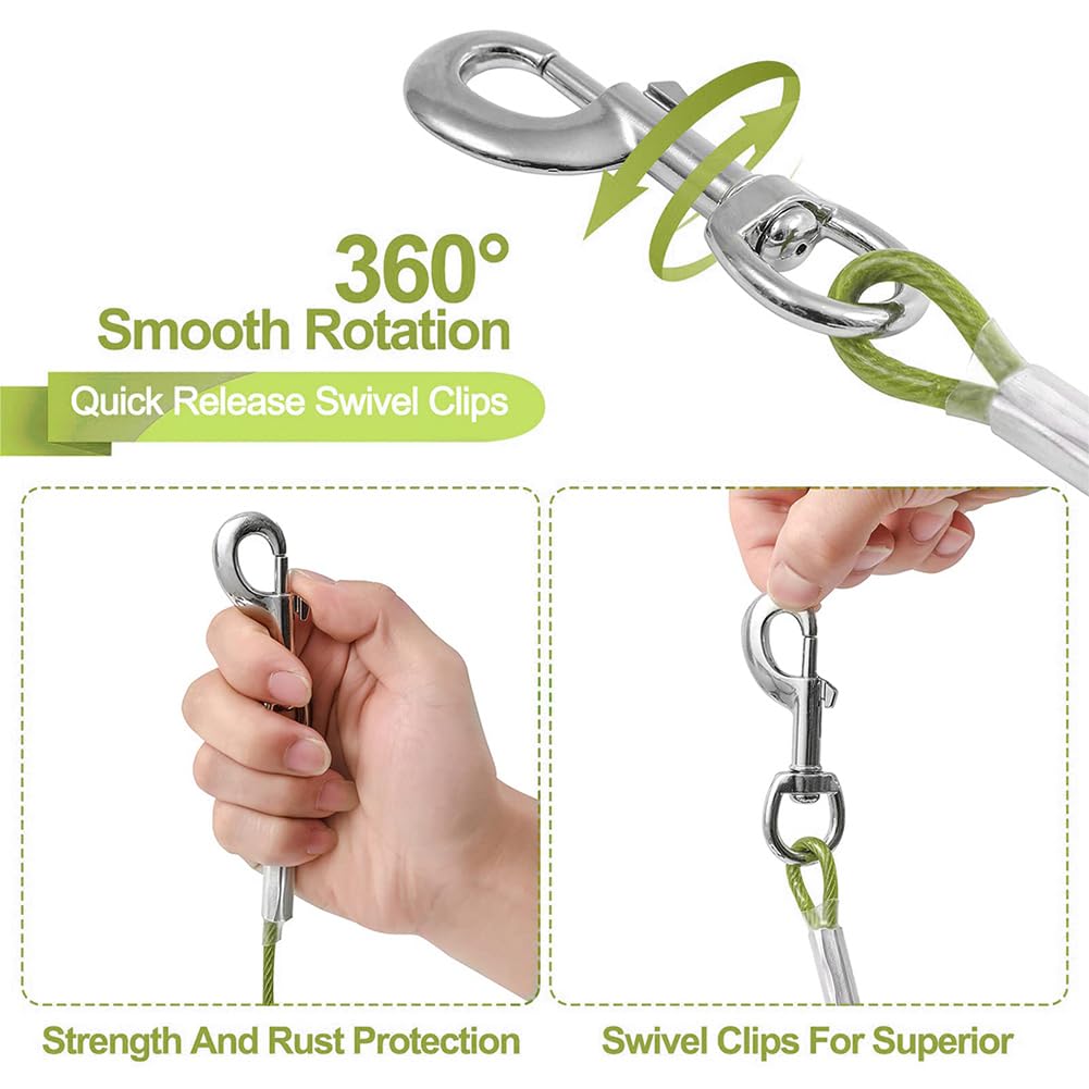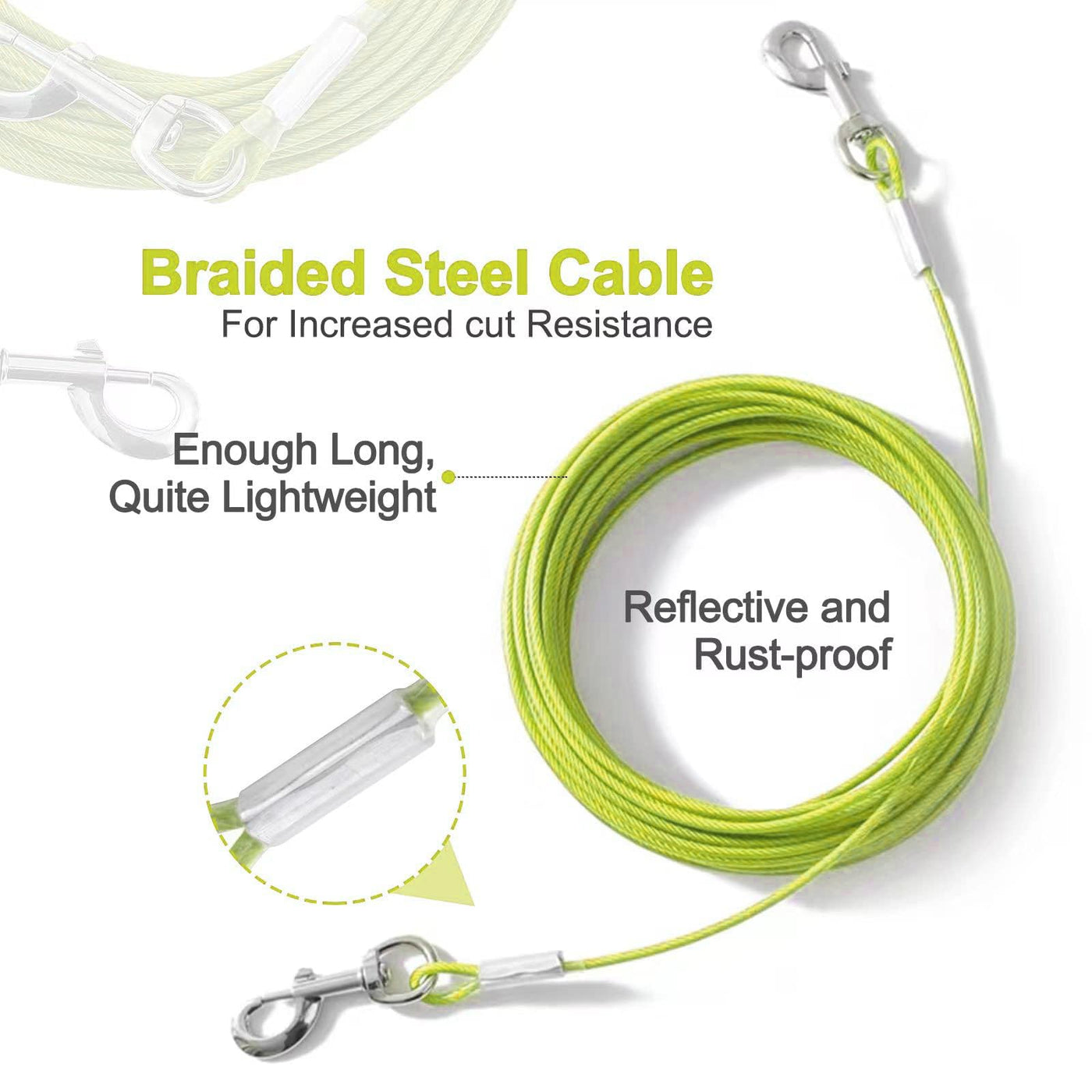 Extra Strong:Dog Leash Wire Cable Is A Heavy Duty Cable,Made Of Strong Steel Wire Rope And Anti-Rusty Pvc Coating, Double Crimp For Stronger Ends, Ultra Strong And Durable For Dogs Up To 250 Lbs.