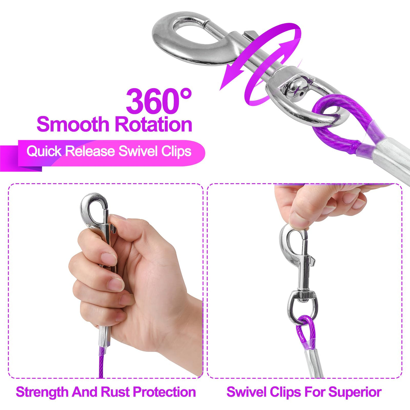 Extra Strong:Dog Leash Wire Cable Is A Heavy Duty Cable,Made Of Strong Steel Wire Rope And Anti-Rusty Pvc Coating, Double Crimp For Stronger Ends, Ultra Strong And Durable For Dogs Up To 250 Lbs.
