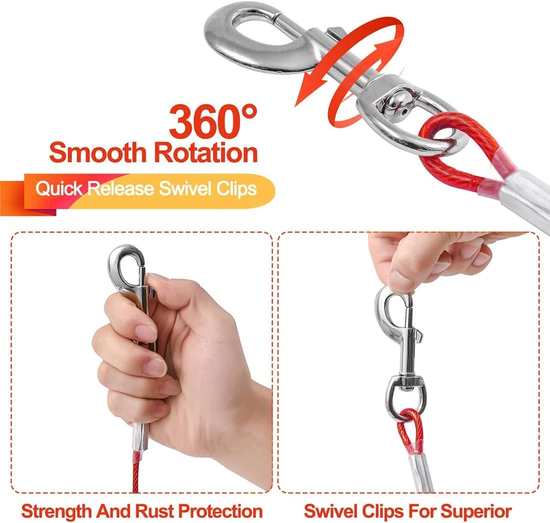 ?Heavy-Duty Dog Tie Out Cable?Made From Heavy-Duty Steel Wire With An Anti-Rust Pvc Coating, This Durable Dog Leash Cable Is Built To Last. Its Double-Crimped Ends Provide Extra Strength, Ensuring It Securely Holds Dogs Up To 125Lbs.