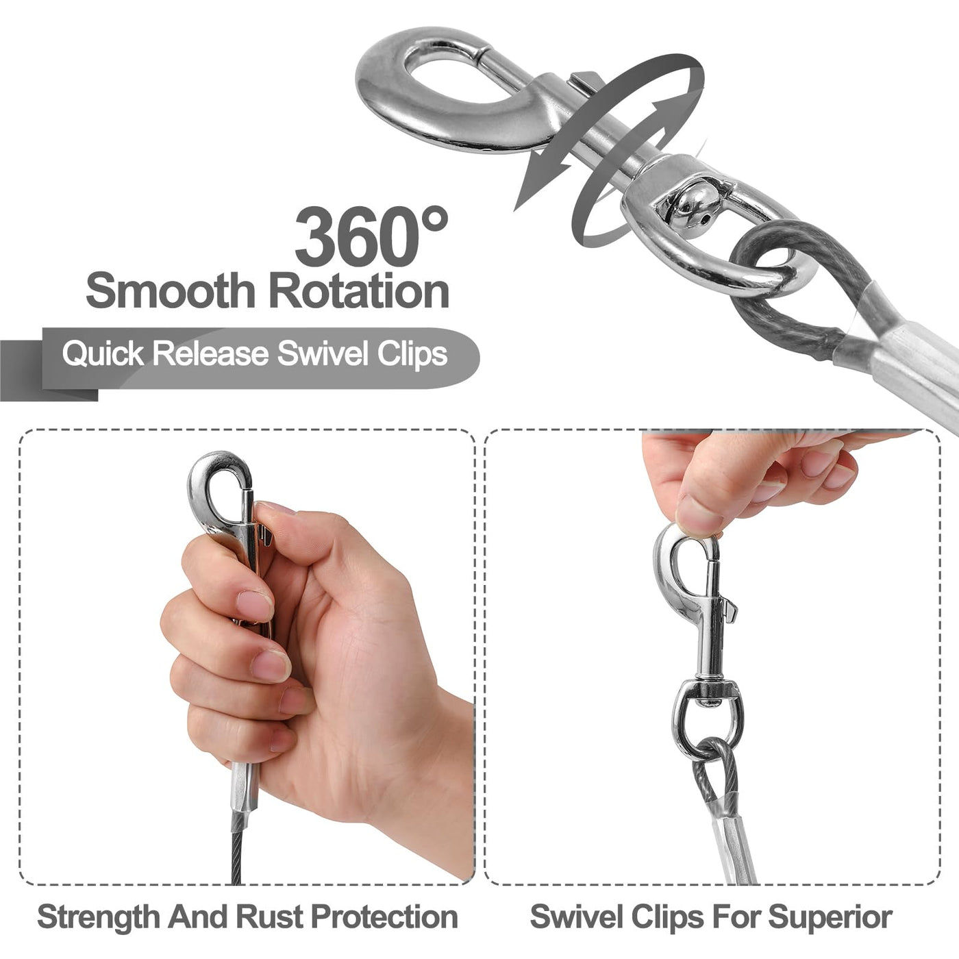 Extra Strong:Dog Leash Wire Cable Is A Heavy Duty Cable,Made Of Strong Steel Wire Rope And Anti-Rusty Pvc Coating, Double Crimp For Stronger Ends, Ultra Strong And Durable For Dogs Up To 250 Lbs.