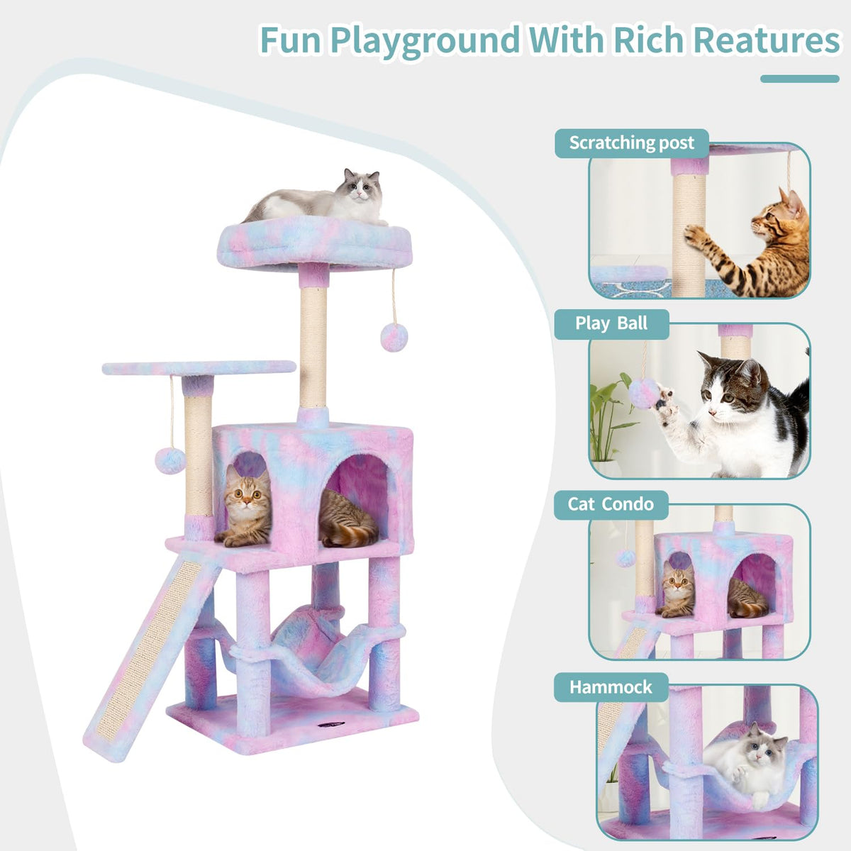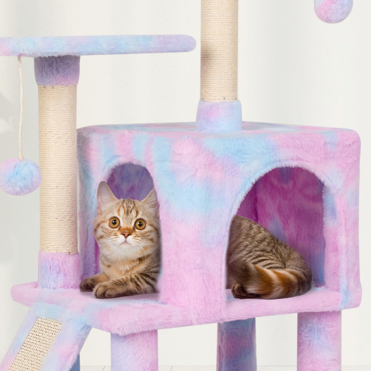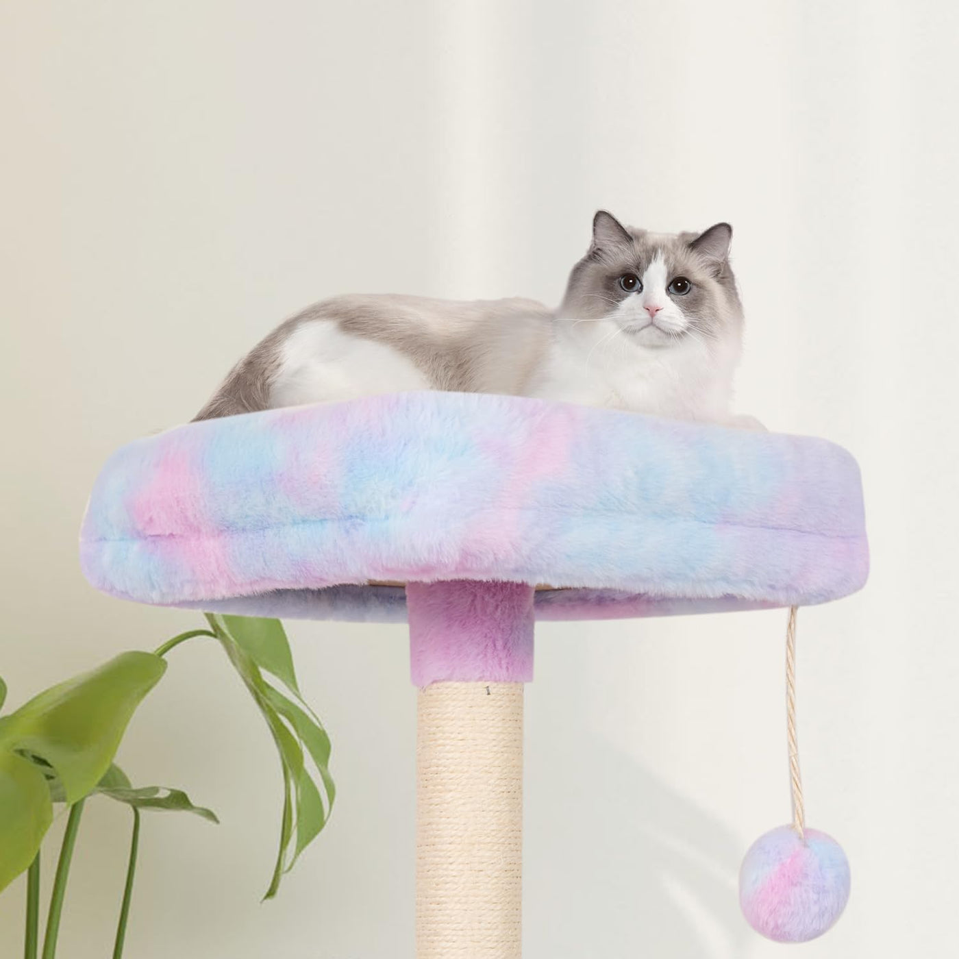 Miao Paw Rainbow Cute Cat Tree For Indoor Cat Tower With Scratching Post Modern Activity House Hammock Hanging Ball Condo With B